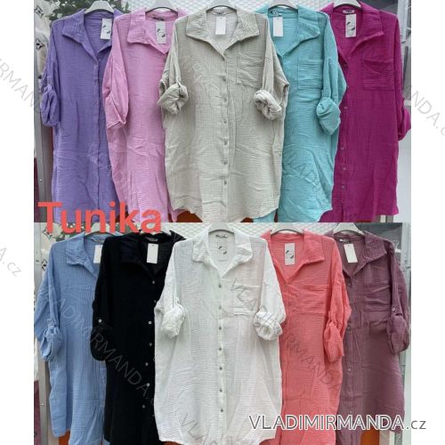 Košeľa mušelínová predĺžená dlhý rukáv dámska nadrozmer (XL/2XL ONE SIZE) TALIANSKA MÓDA IMWCW24026