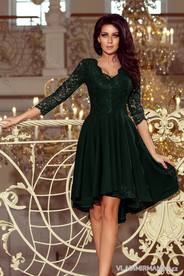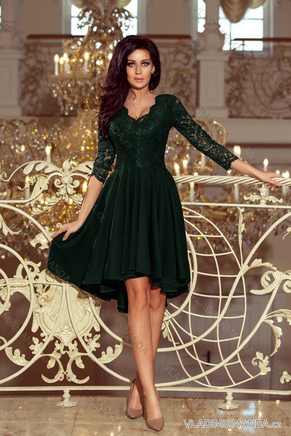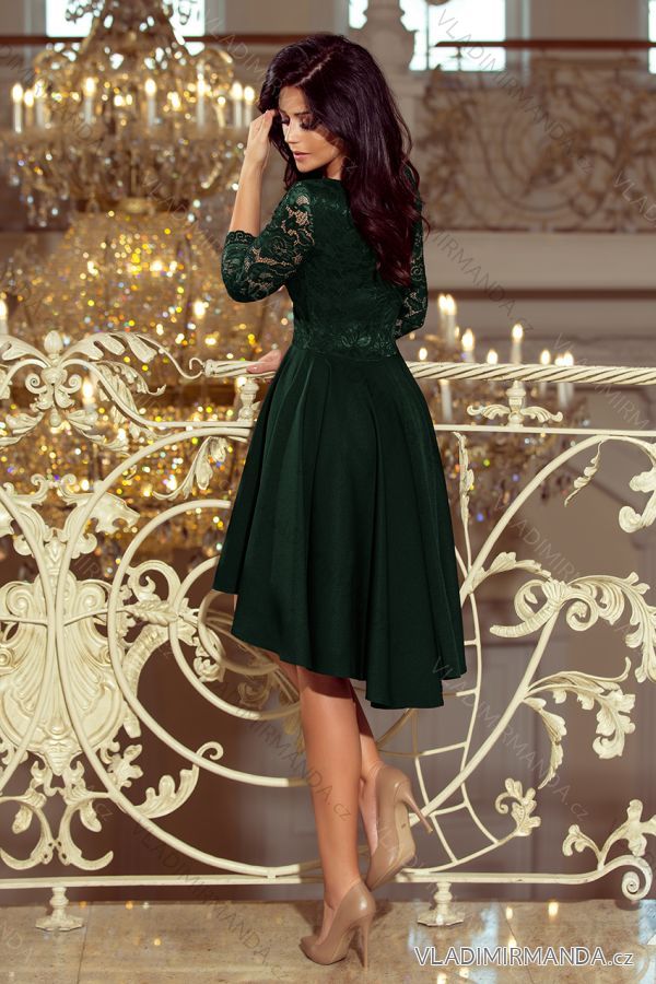 TOVAR (124947) > oblečenie dámske (81640) > šaty (30860) > Šaty spoločenské (4577) > Šaty plesové krátke (1311) > 210-3 NICOLLE - šaty s dlhším chrbtom s čipkovým výstrihom - tmavo zelená