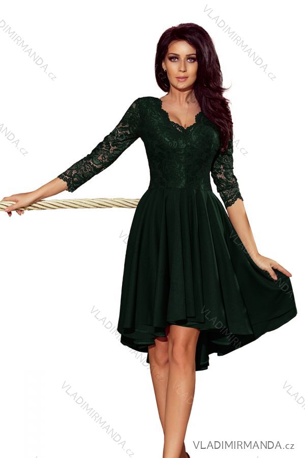 210-3 NICOLLE - šaty s dlhším chrbtom s čipkovým výstrihom - tmavo zelená