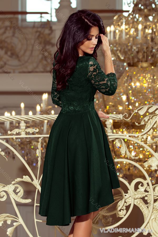 TOVAR (120811) > oblečenie dámske (81893) > šaty (30754) > Šaty spoločenské (5030) > Šaty plesové krátke (1332) > 210-3 NICOLLE - šaty s dlhším chrbtom s čipkovým výstrihom - tmavo zelená