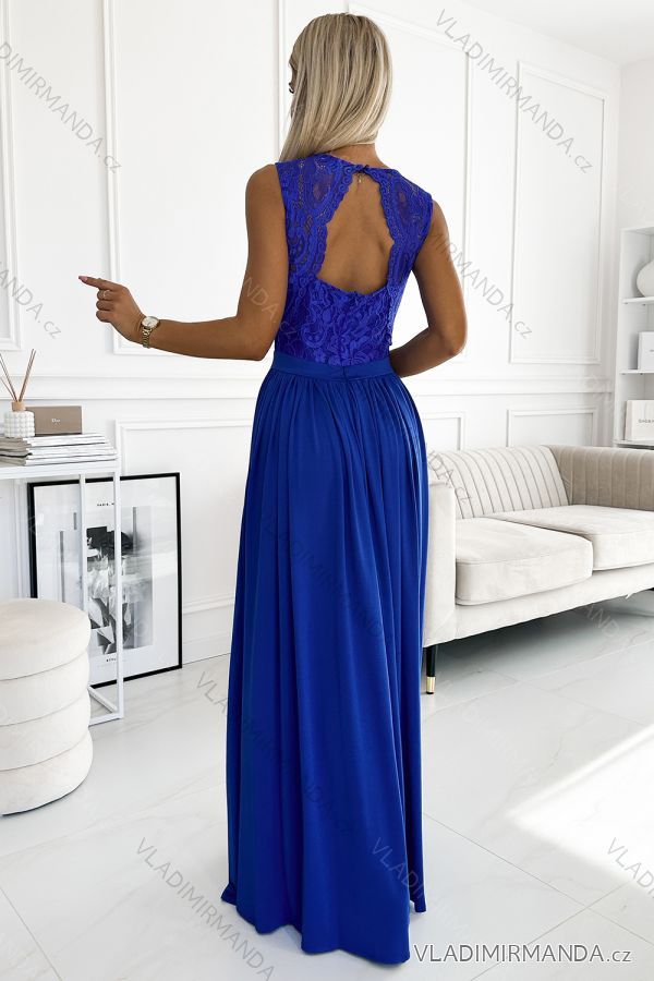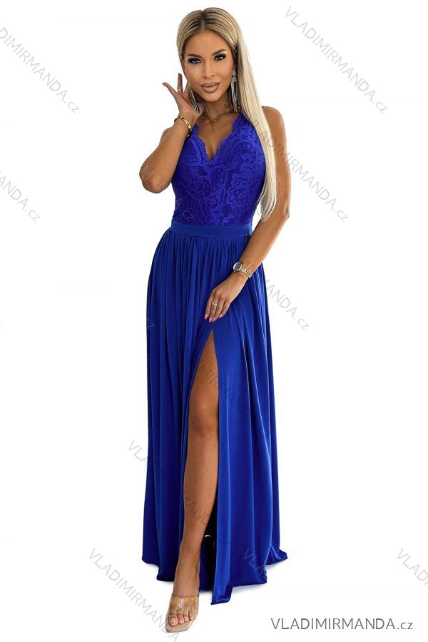 211-7 LEA dlhé šaty s čipkovaným výstrihom - kráľovská modrá