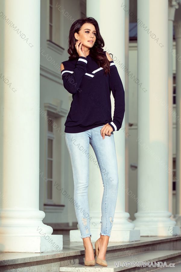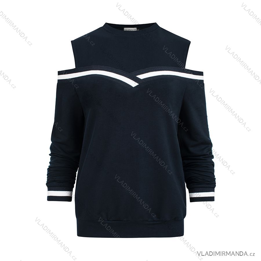 TOVAR (120623) > oblečenie dámske (81733) > Košele a blúzky (3787) > Blúzky krátky rukáv (557) > 223-1 Pohodlná mikina s holými plecami - tmavomodrá