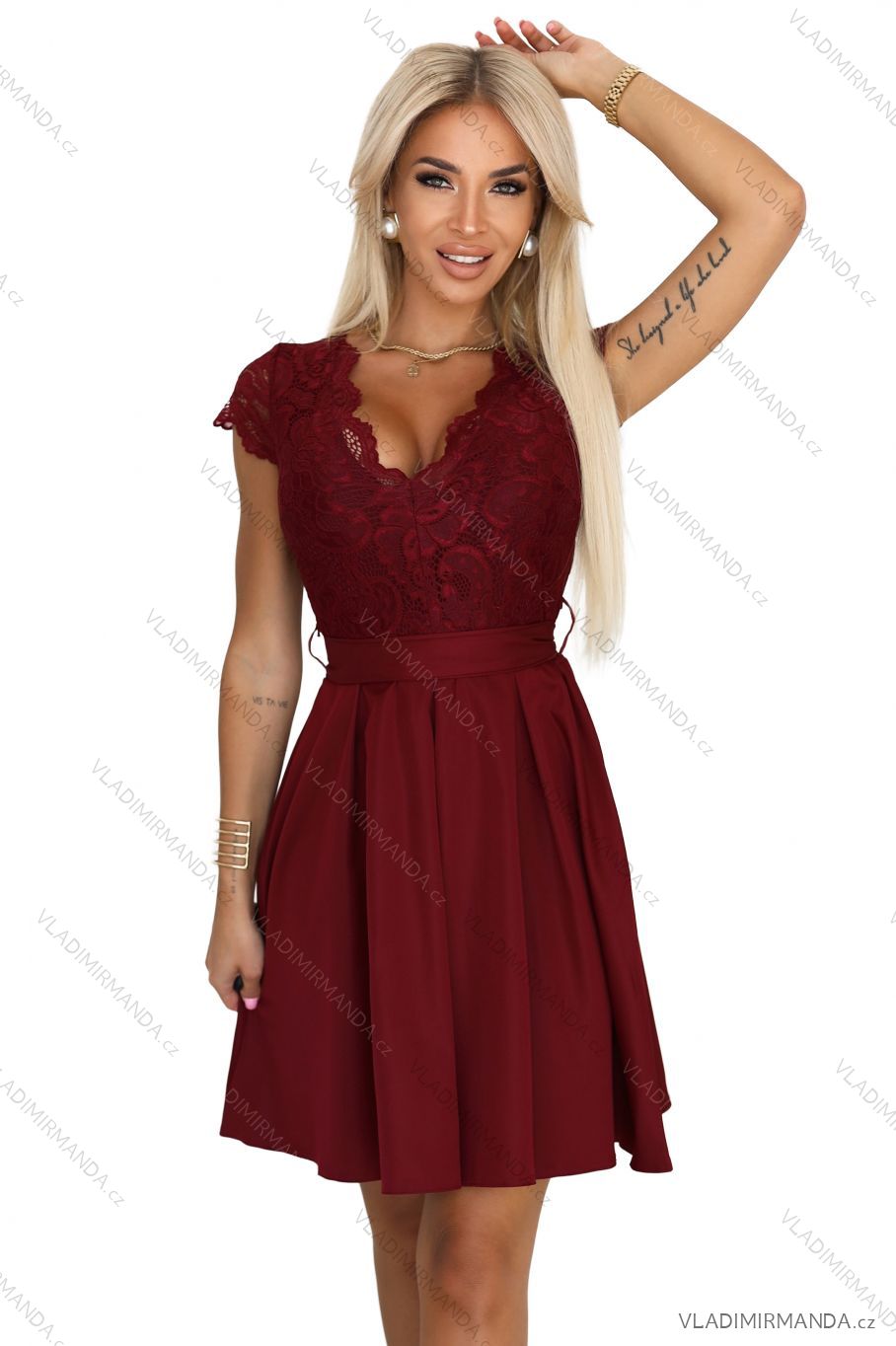 TOVAR (120887) > oblečenie dámske (81951) > šaty (30768) > šaty elegantné (8574) > Šaty elegantné krátky rukáv (2079) > 242-5 ANNA Čipkované šaty s výstrihom a rozšírenou sukňou - bordové