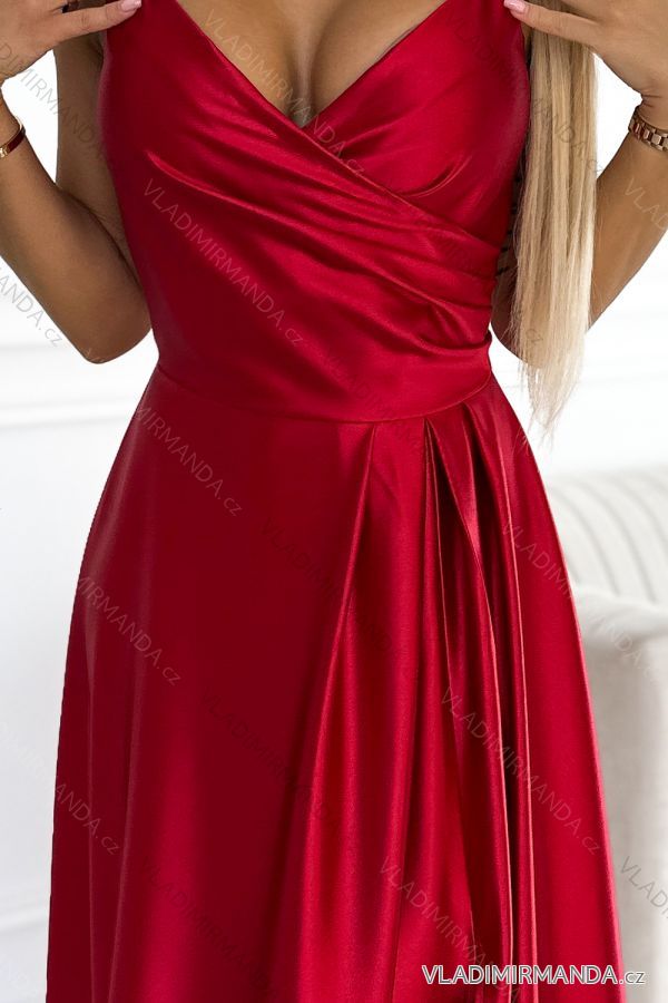 TOVAR (120623) > oblečenie dámske (81733) > šaty (30707) > Šaty spoločenské (5013) > Šaty plesové dlhé (3165) > 299-14 CHIARA elegantné saténové maxi šaty na ramienka - červená farba