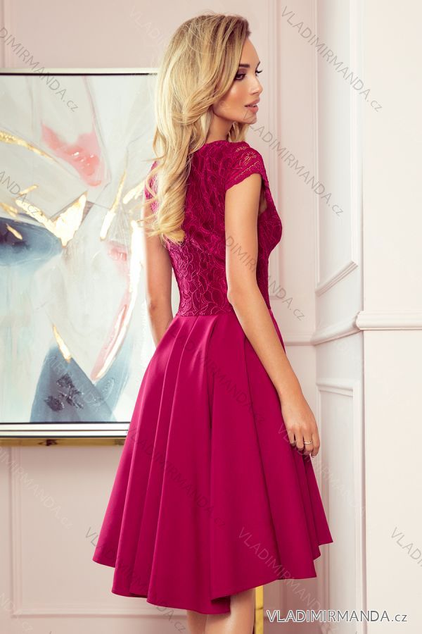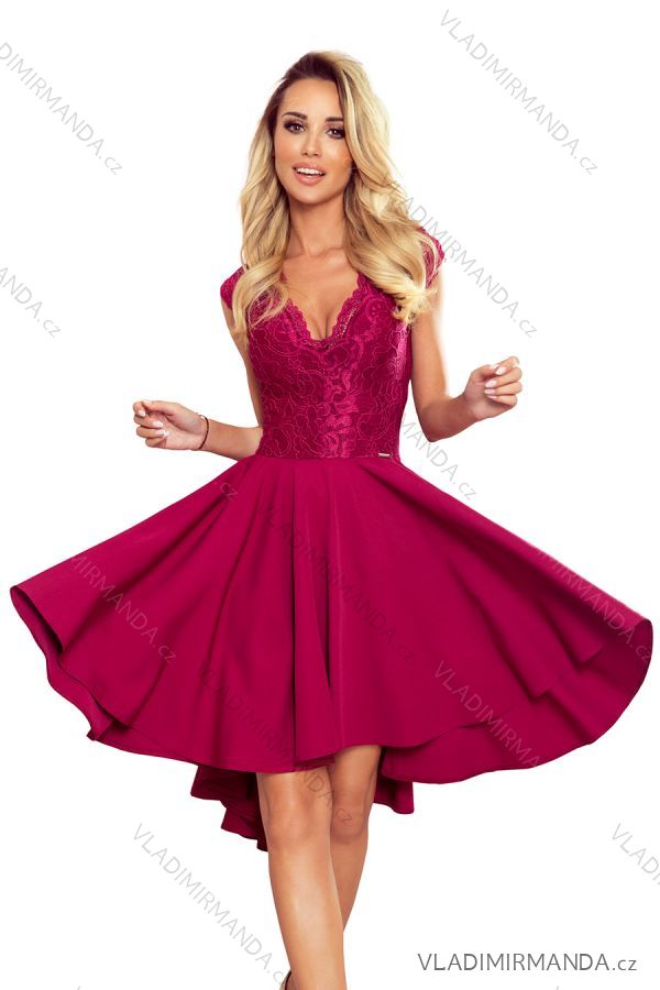 TOVAR (120600) > 300-4 PATRICIA - šaty s dlhším chrbtom s čipkovým výstrihom - bordová farba