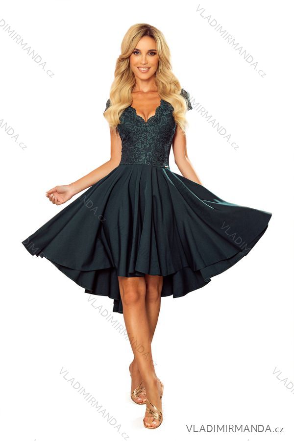 300-5 PATRICIA - dress with longer back with lace neckline - green color