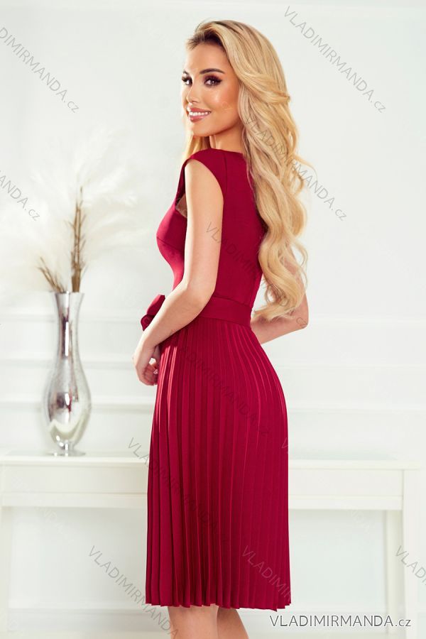 TOVAR (121230) > oblečenie dámske (82015) > šaty (30957) > šaty elegantné (8551) > Šaty elegantné krátky rukáv (2083) > 311-11 LILA Plisované šaty s krátkym rukávom - farba vínová