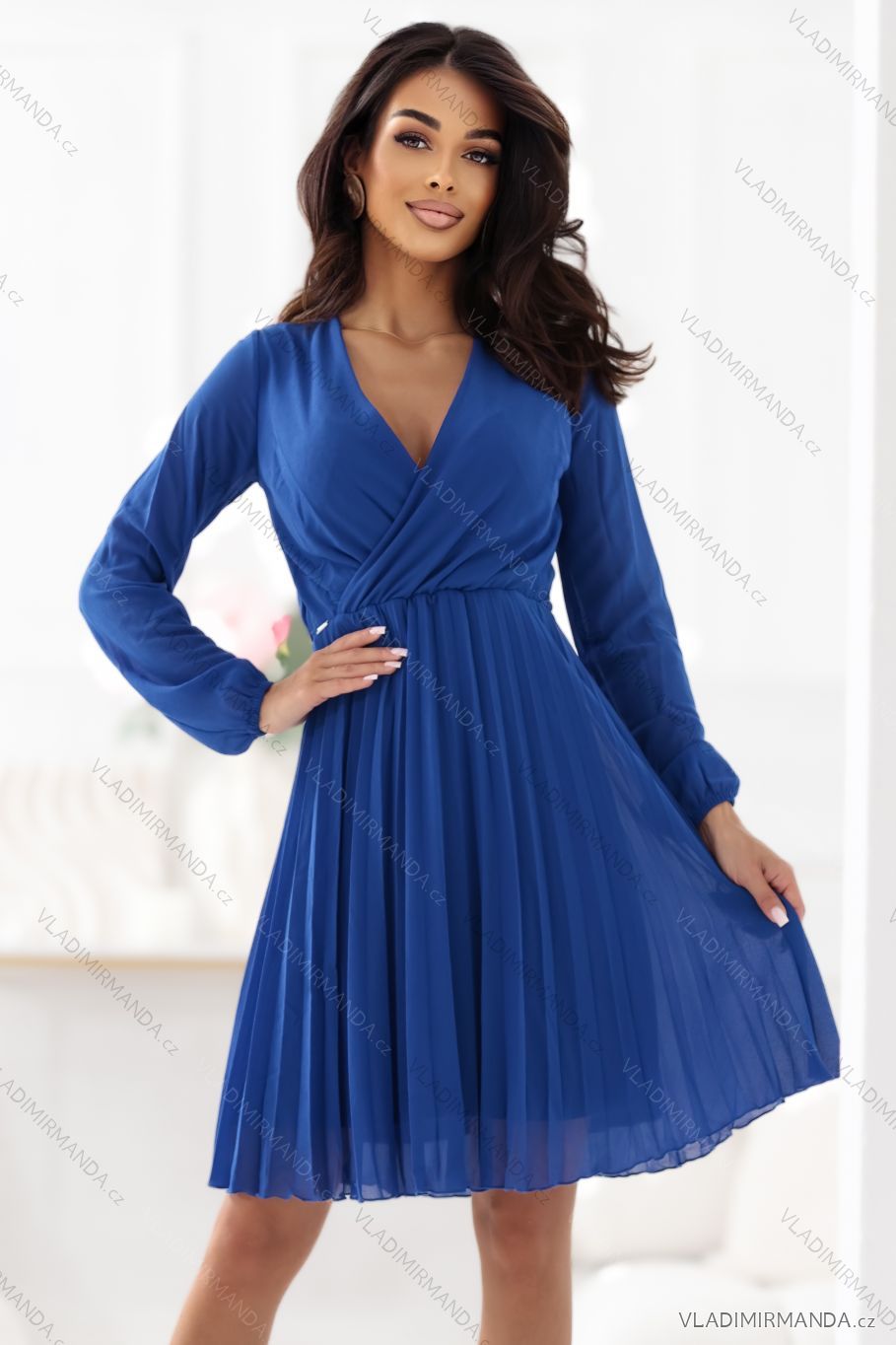 TOVAR (120853) > oblečenie dámske (81920) > šaty (30765) > šaty elegantné (8577) > Šaty elegantné krátky rukáv (2081) > 313-18 ISABELLE Elegantné skladané šaty s výstrihom a dlhými rukávmi - nevädzovo modré