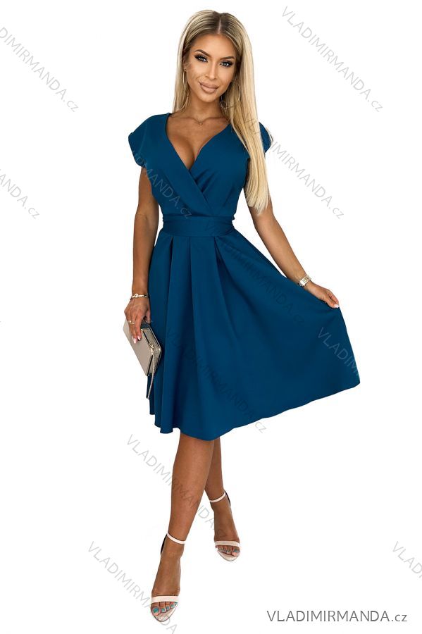 TOVAR (119629) > oblečenie dámske (81008) > šaty (30395) > šaty elegantné (8539) > 348-5 SCARLETT - rozšírené šaty s výstrihom - morská farba