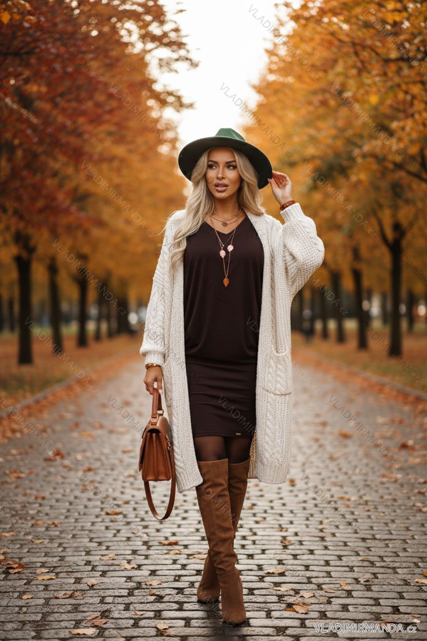 Tieto šaty sú majstrovským spojením trendov a funkčnosti. Zamerali sme sa na voľný, pohodlný vrch s netopierím vzorom, ktorý zaručuje celodenné pohodlie. Skombinovali sme ho s krátkym, priliehavým spodným dielom, ktorý šikovne predlžuje nohy a tvaruje siluetu. Hlboký výstrih do V a ušľachtilá čokoládovo hnedá farba sú zárukou, že budete bez námahy vyzerať dokonale. Ideálne pre ženy, ktoré si cenia kvalitu a chcú sa cítiť pohodlne a zároveň si zachovať štýl.