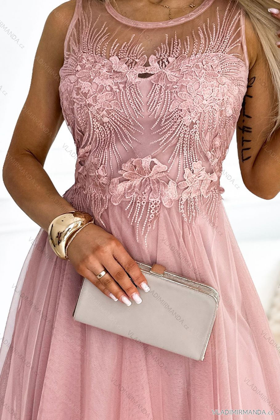 522-1 CATERINA Ženské šaty s guipure a jemným tylom - púdrovo ružové