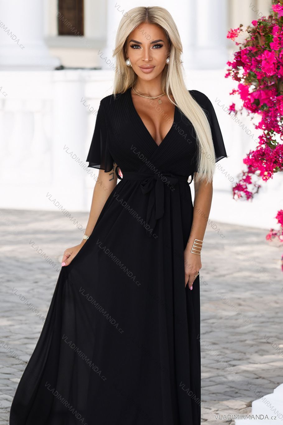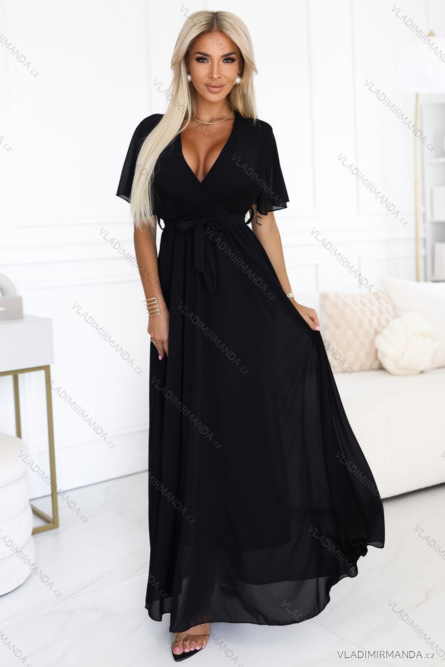 TOVAR (120805) > oblečenie dámske (81891) > šaty (30743) > Šaty spoločenské (5027) > Šaty plesové dlhé (3170) > 545-5 Dlhé šaty s plisovaným výstrihom a zaväzovaním - čierne