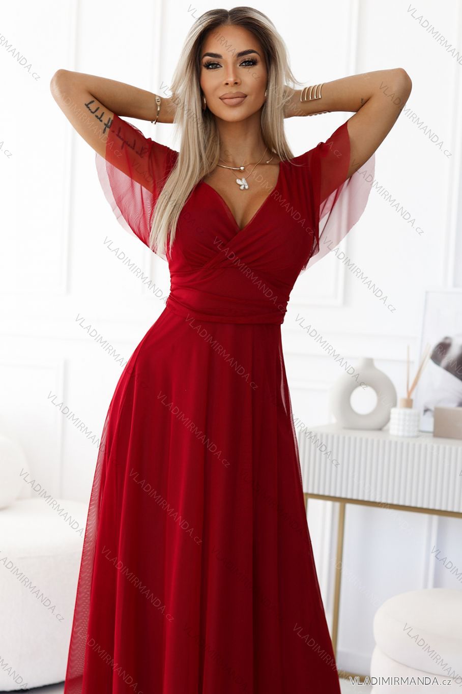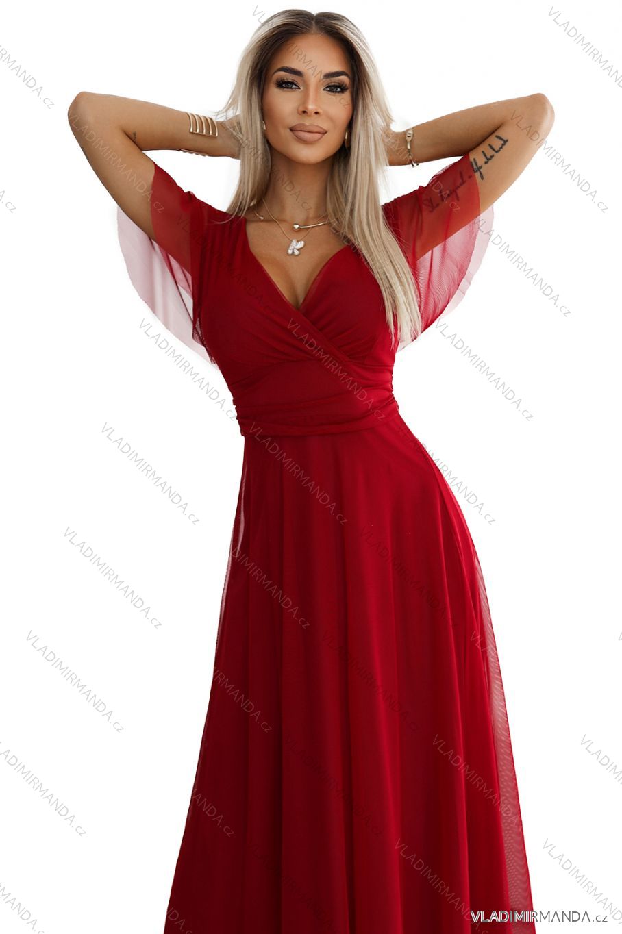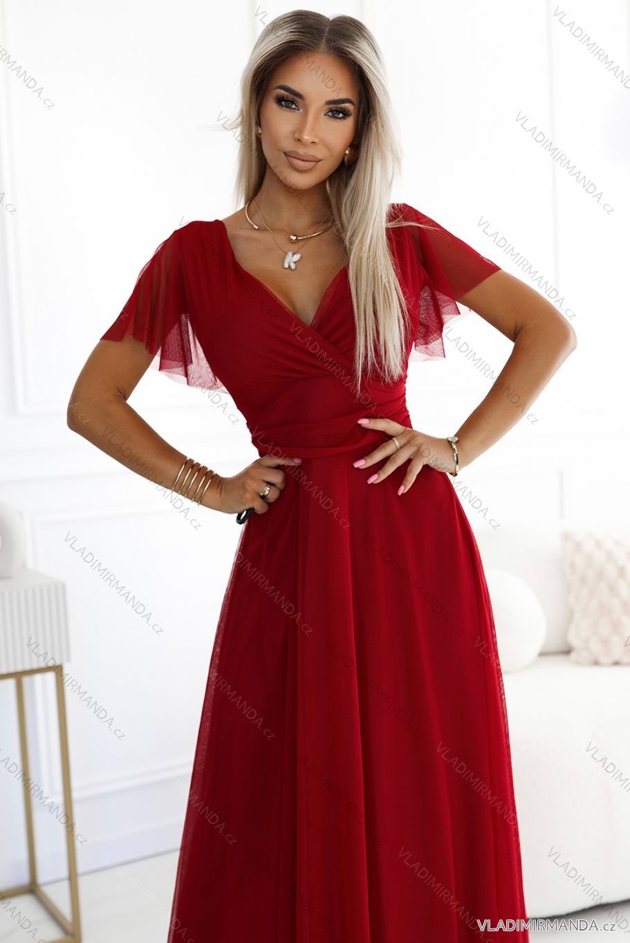 TOVAR (120669) > oblečenie dámske (81782) > šaty (30714) > Šaty spoločenské (5014) > Šaty plesové dlhé (3166) > 562-2 NASTIA Dlhé šaty s výstrihom a krátkymi rukávmi - bordové