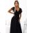 562-3 NASTIA Dlhé šaty s výstrihom a krátkymi rukávmi - čierne