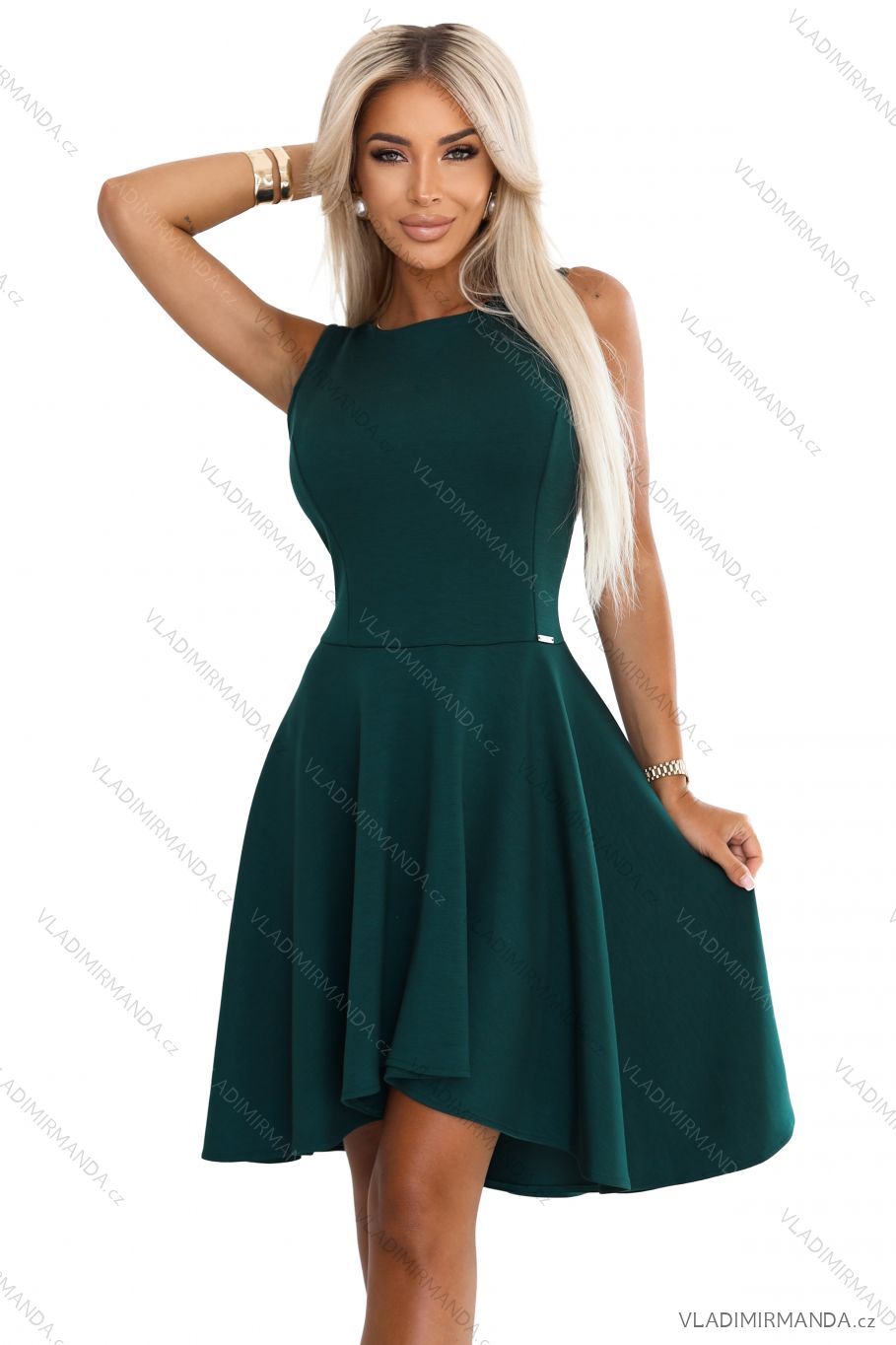 TOVAR (120887) > oblečenie dámske (81955) > šaty (30770) > šaty elegantné (8574) > Šaty elegantné krátky rukáv (2079) > 575-2 Zvonové šaty s nádherným predĺženým chrbtom – fľaškovozelené