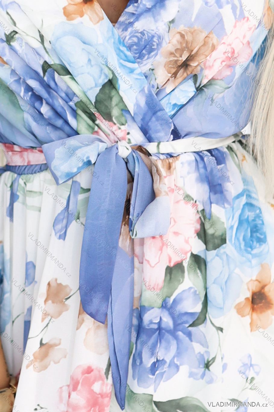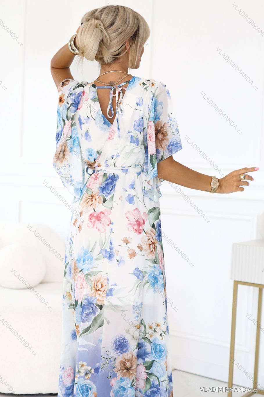 TOVAR (119419) > oblečenie dámske (80848) > šaty (30318) > šaty šifónové (1058) > Šaty šifónové letné (681) > 603-3 Vzdušné zavinovacie maxi šaty s kvetinovým vzorom – modré ruže
