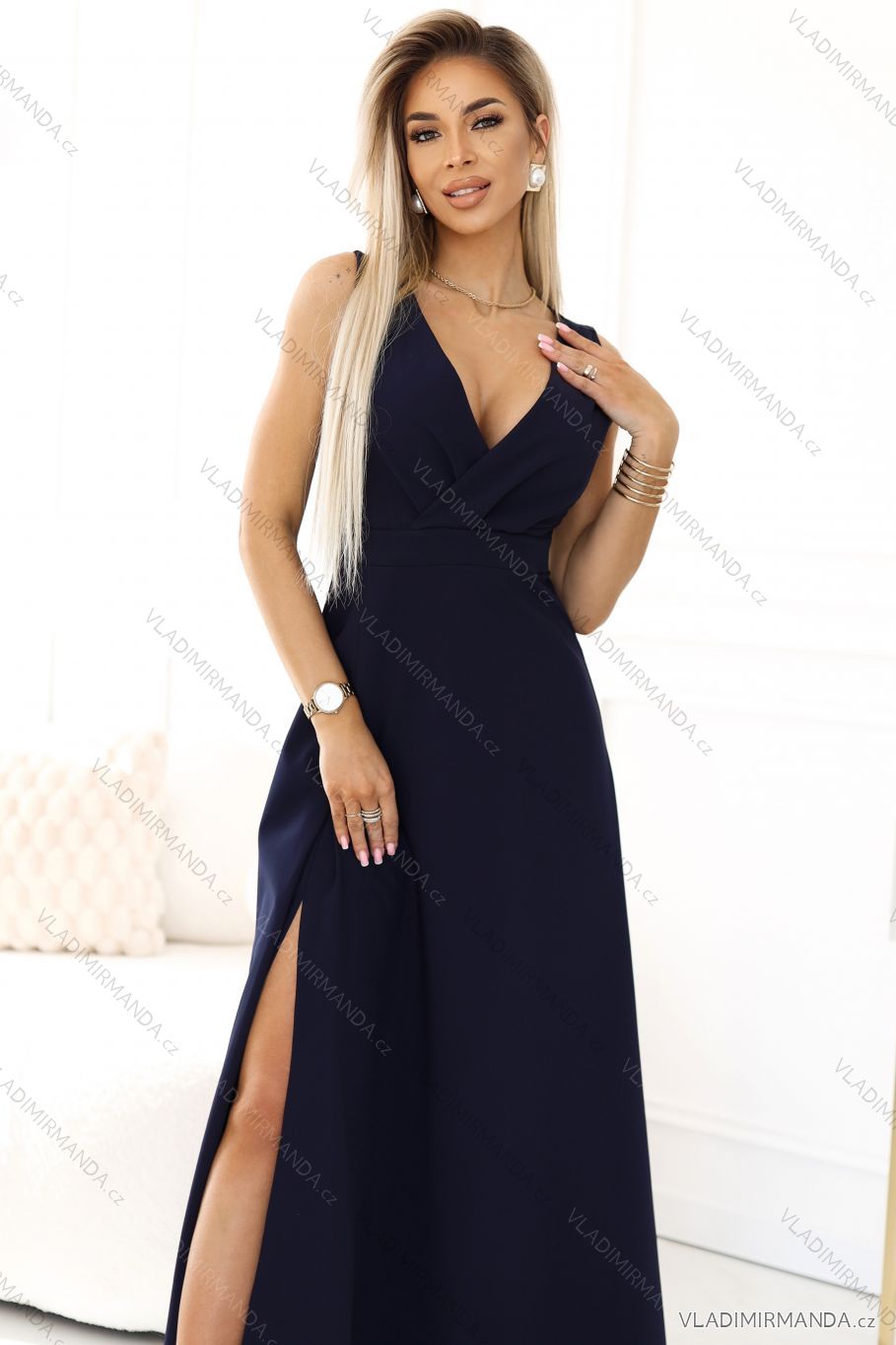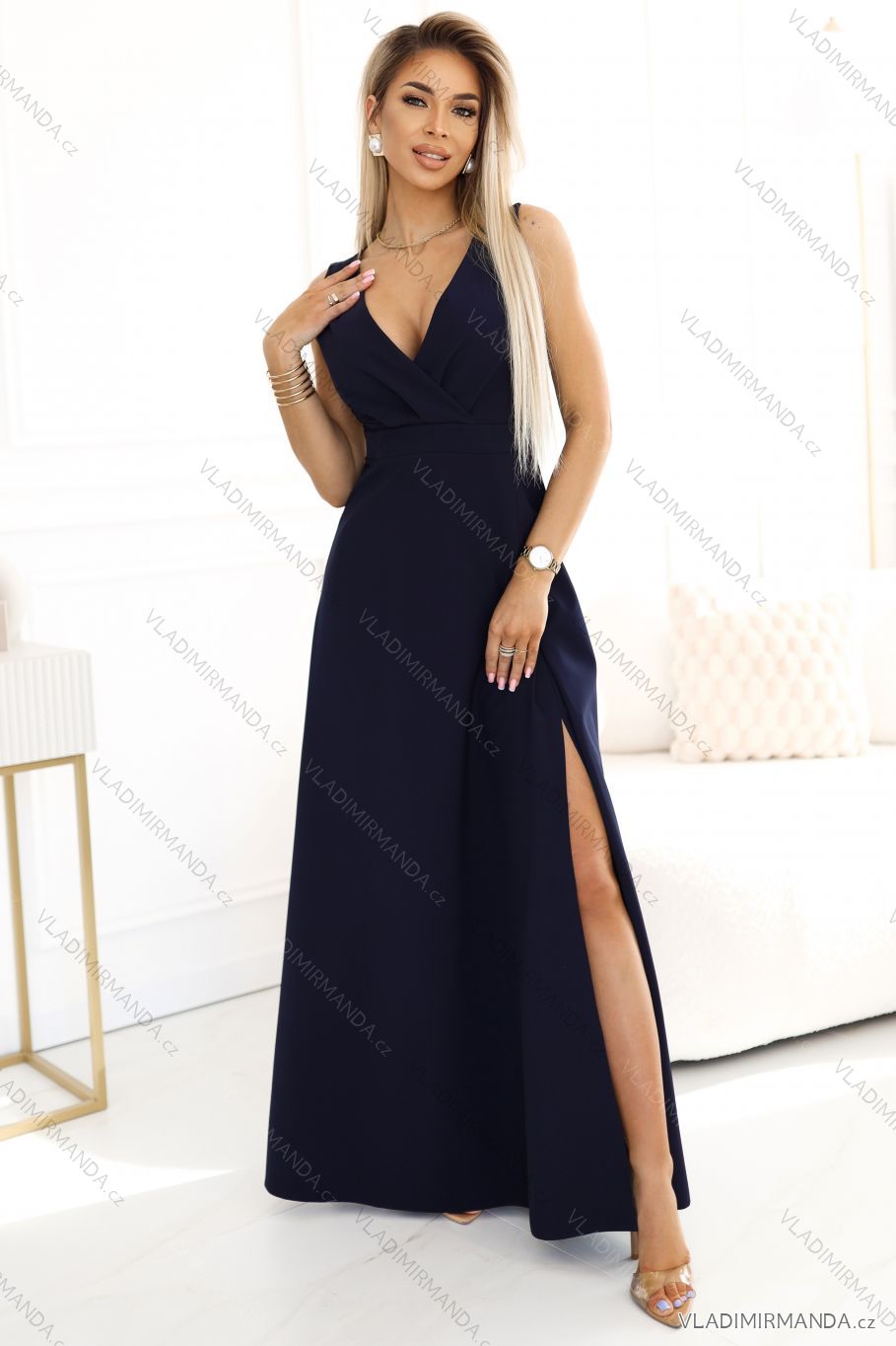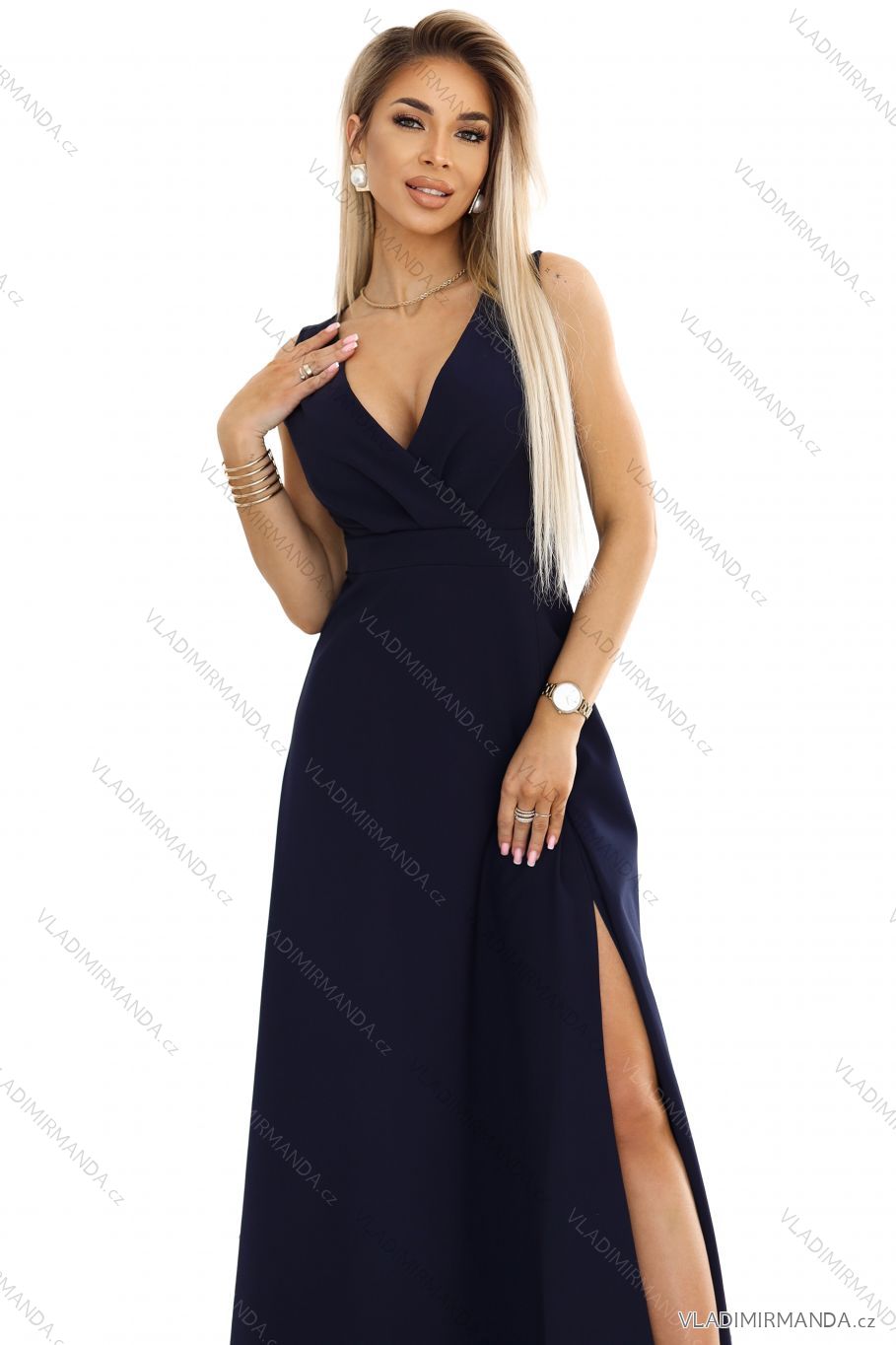 TOVAR (120476) > oblečenie dámske (81594) > šaty (30655) > Šaty spoločenské (5018) > Šaty plesové dlhé (3171) > 634-1 MIRA elegantné maxi šaty s výstrihom do vrecka a rozparkom na nohavici - tmavomodré