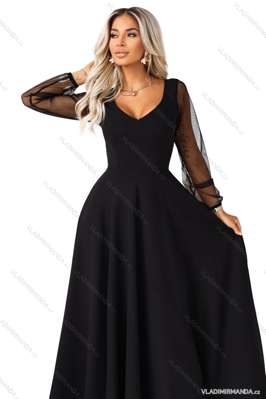 TOVAR (120690) > oblečenie dámske (81793) > šaty (30748) > Šaty spoločenské (4999) > Šaty plesové dlhé (3186) > 640-2 LORETTA jedinečné dlhé šaty s tylovými rukávmi a výstrihom - čierne