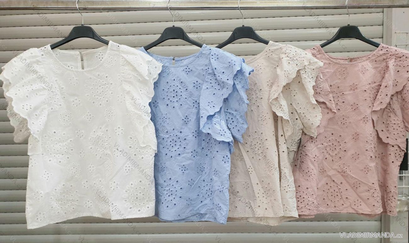 Blúzka čipkovaná krátky rukáv dámska (S / M ONE SIZE) TALIANSKÁ MÓDA IMWD212810