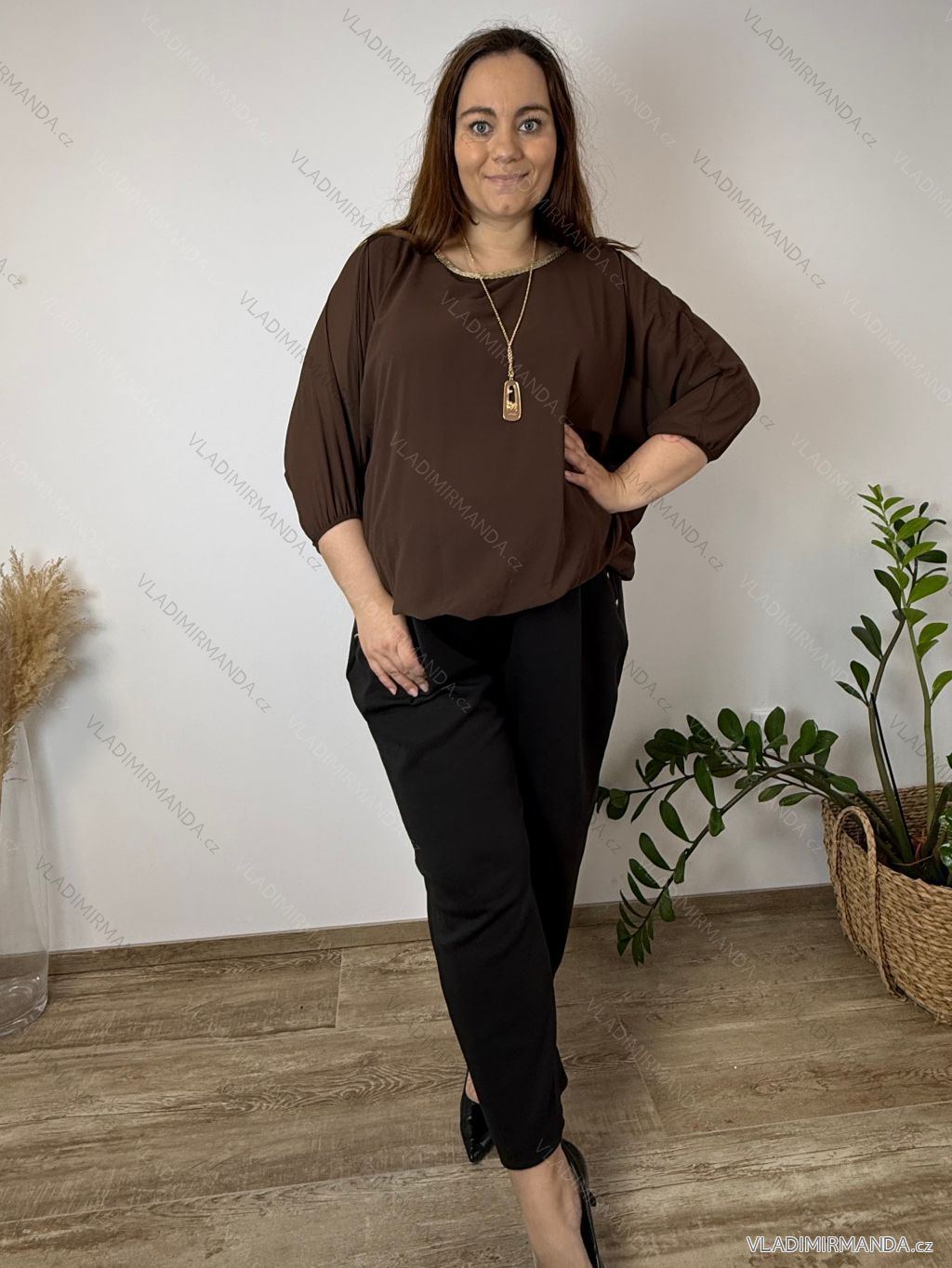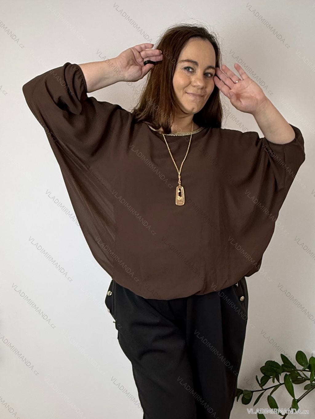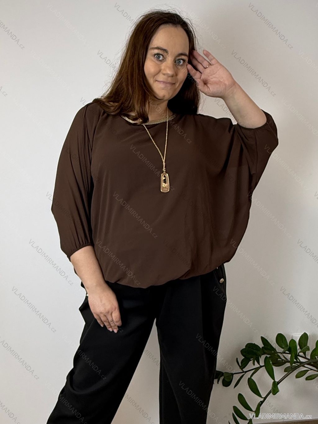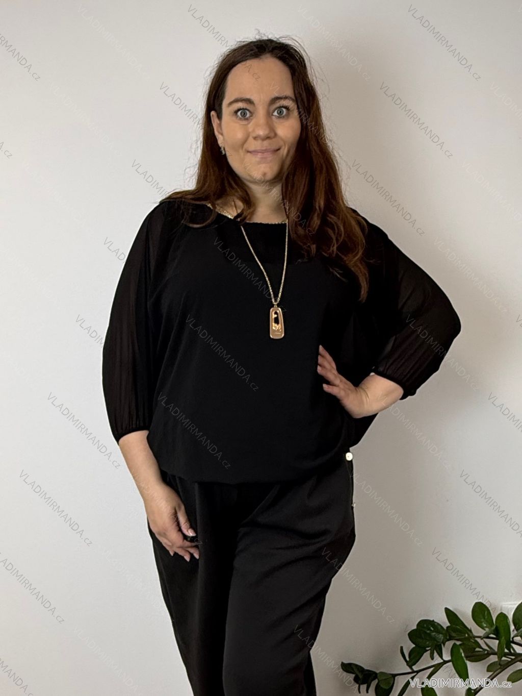 TOVAR (120465) > oblečenie dámske (81583) > Košele a blúzky (3776) > Blúzky dlhý rukáv (644) > Blúzka elegantná s príveskom 3/4 dlhý rukáv dámska nadrozmer SIRENA (48/50/52 ONE SIZE) TALIANSKA MÓDA IMD26004/DU čierna