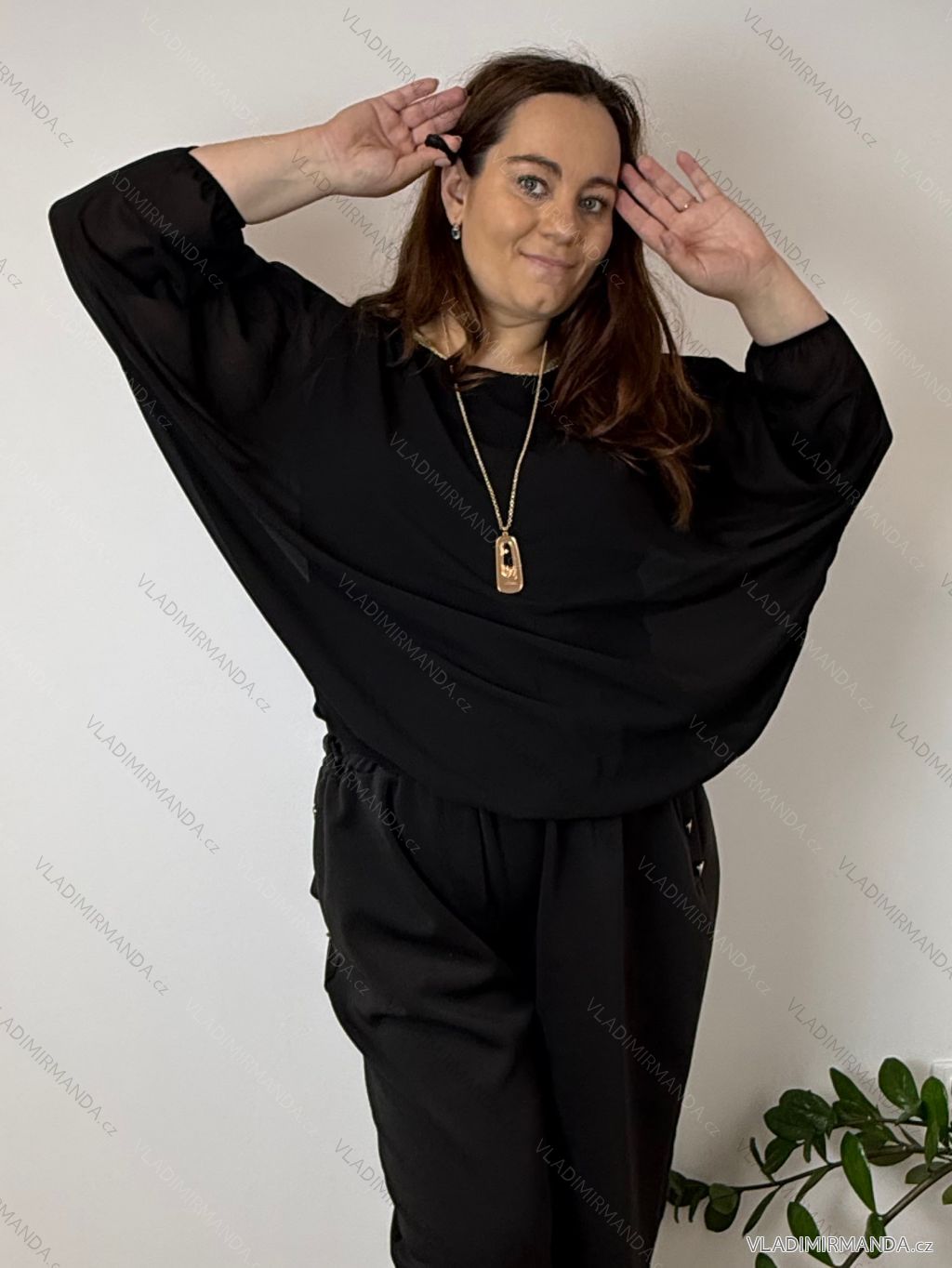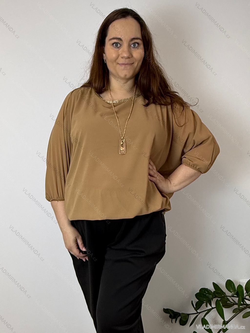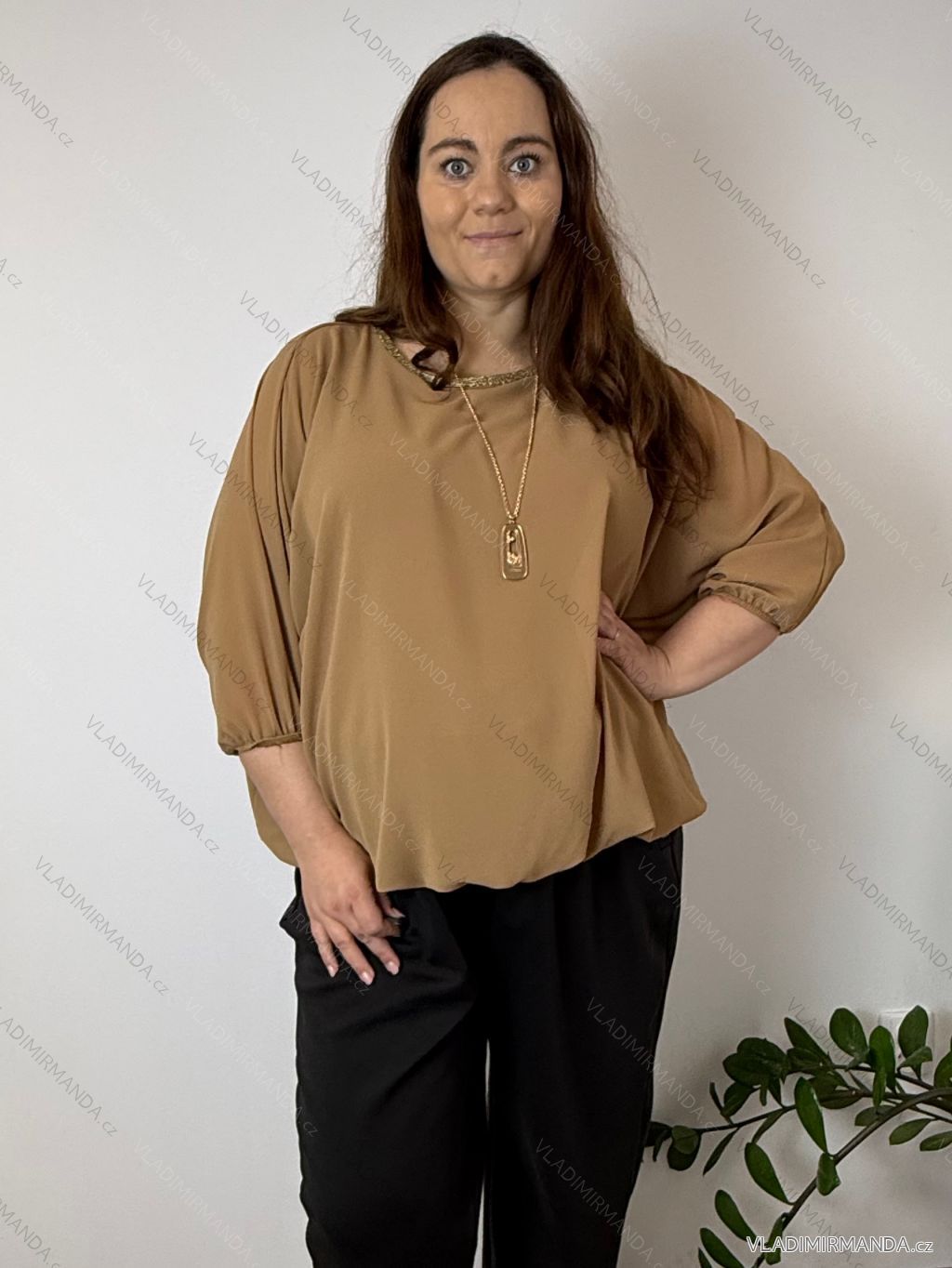 TOVAR (120465) > oblečenie dámske (81583) > Košele a blúzky (3776) > Blúzky dlhý rukáv (644) > Blúzka elegantná s príveskom 3/4 dlhý rukáv dámska nadrozmer SIRENA (48/50/52 ONE SIZE) TALIANSKA MÓDA IMD26004/DU čierna
