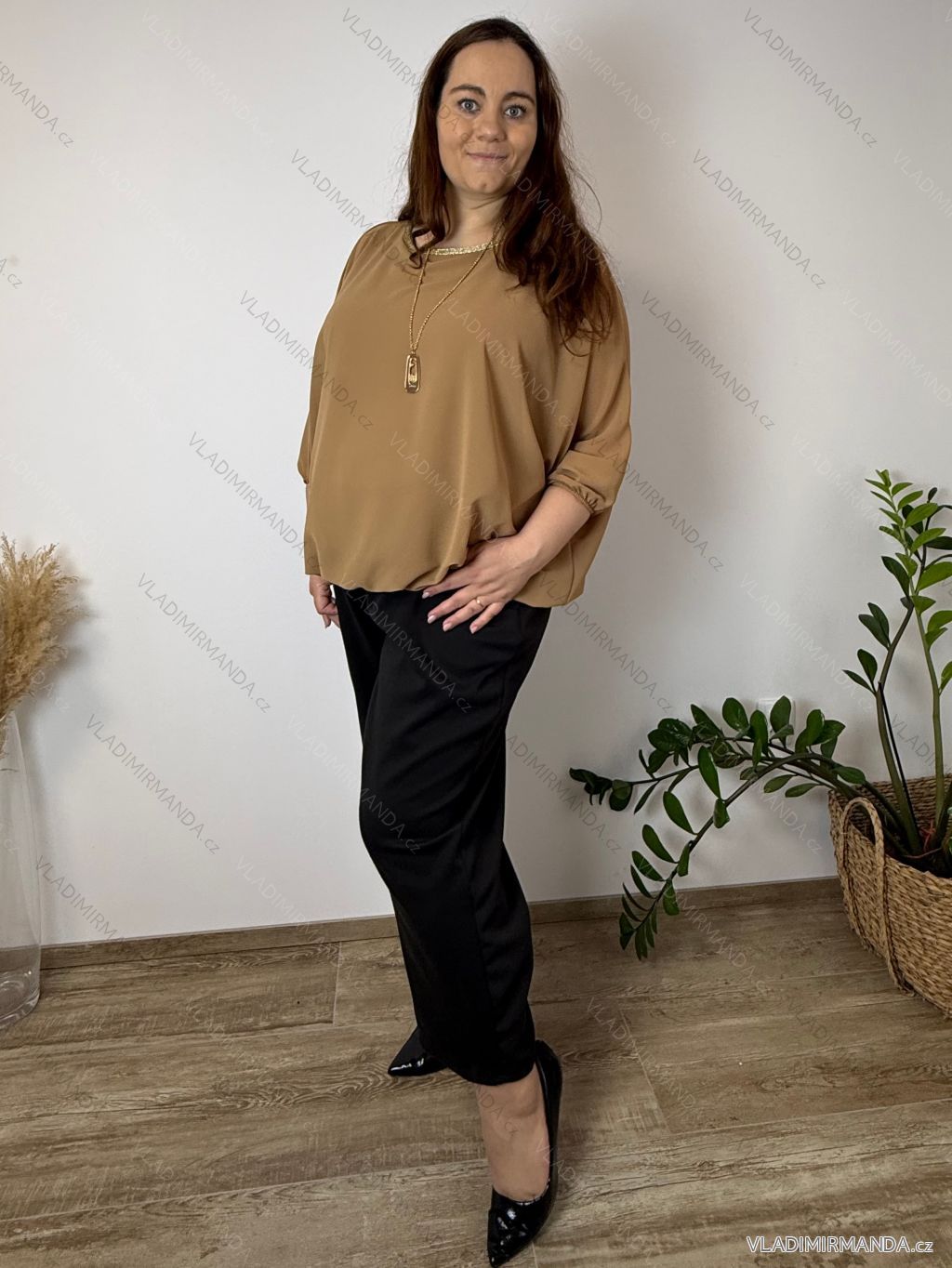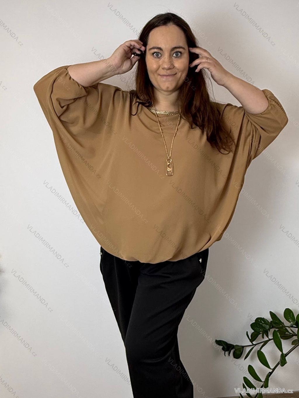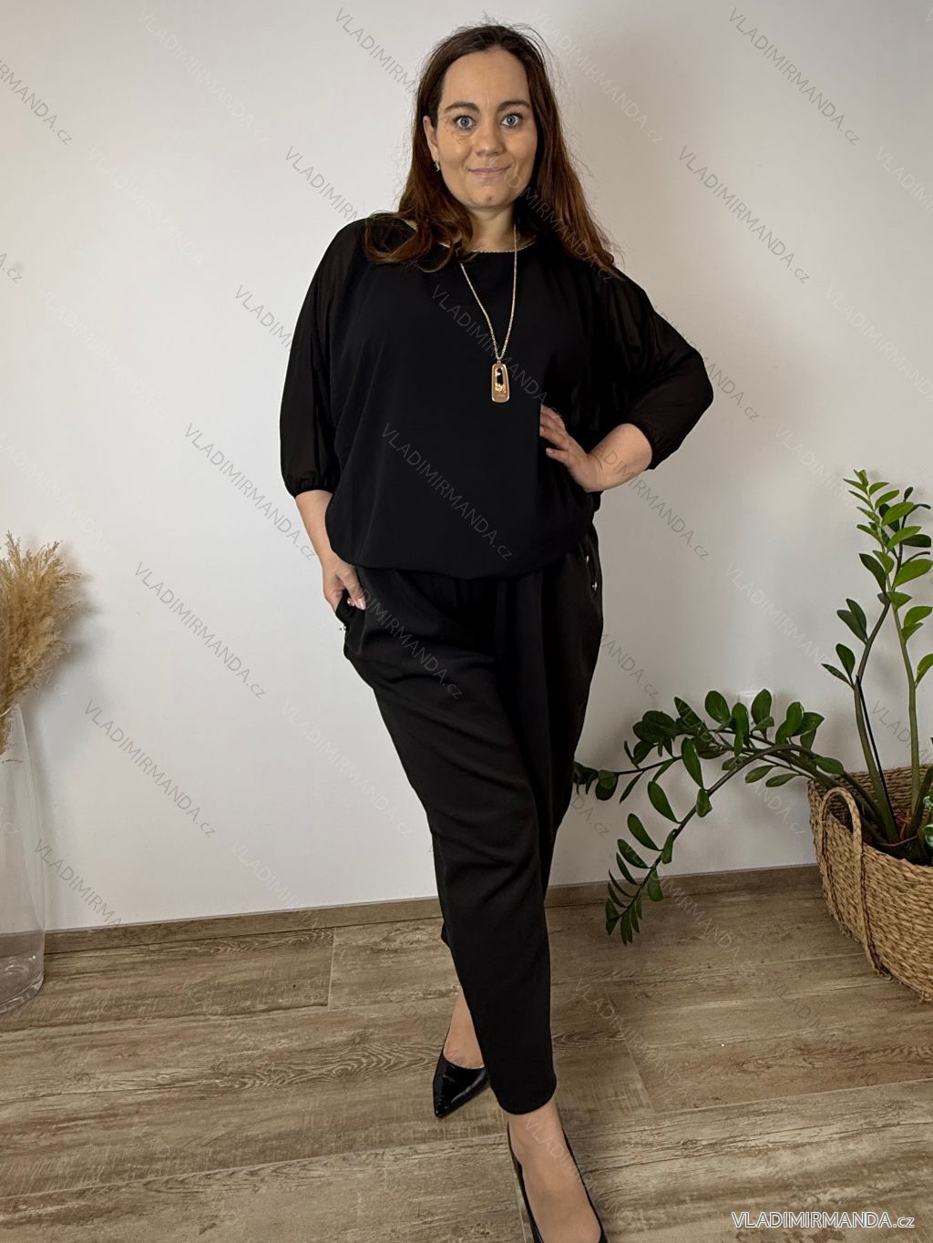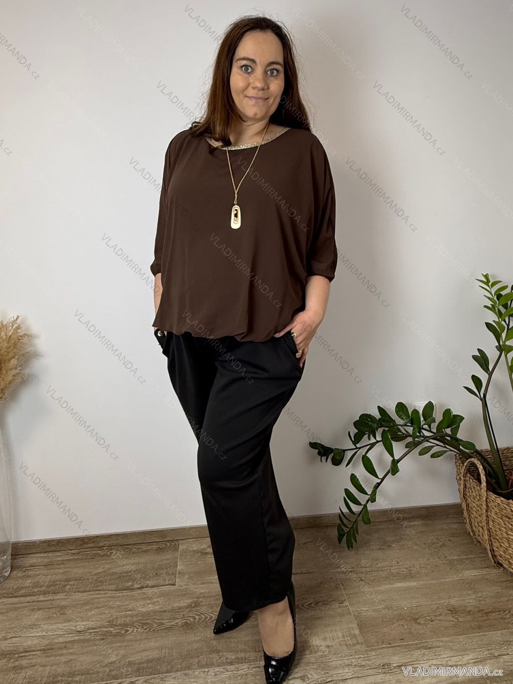 TOVAR (120465) > oblečenie dámske (81583) > Košele a blúzky (3776) > Blúzky dlhý rukáv (644) > Blúzka elegantná s príveskom 3/4 dlhý rukáv dámska nadrozmer SIRENA (48/50/52 ONE SIZE) TALIANSKA MÓDA IMD26004/DU čierna