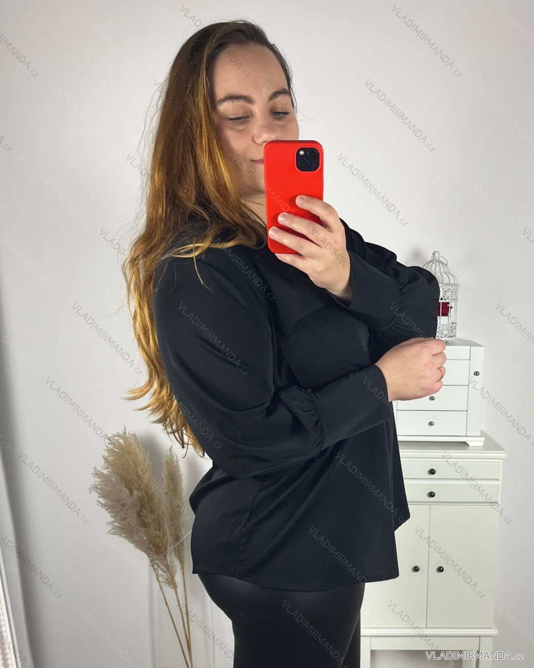 Blúzka košele dlhý rukáv dámska nadrozmer (2XL/3XL ONE SIZE) TALIANSKA MÓDA IMWT234257/DR 2XL/3XL Čierna