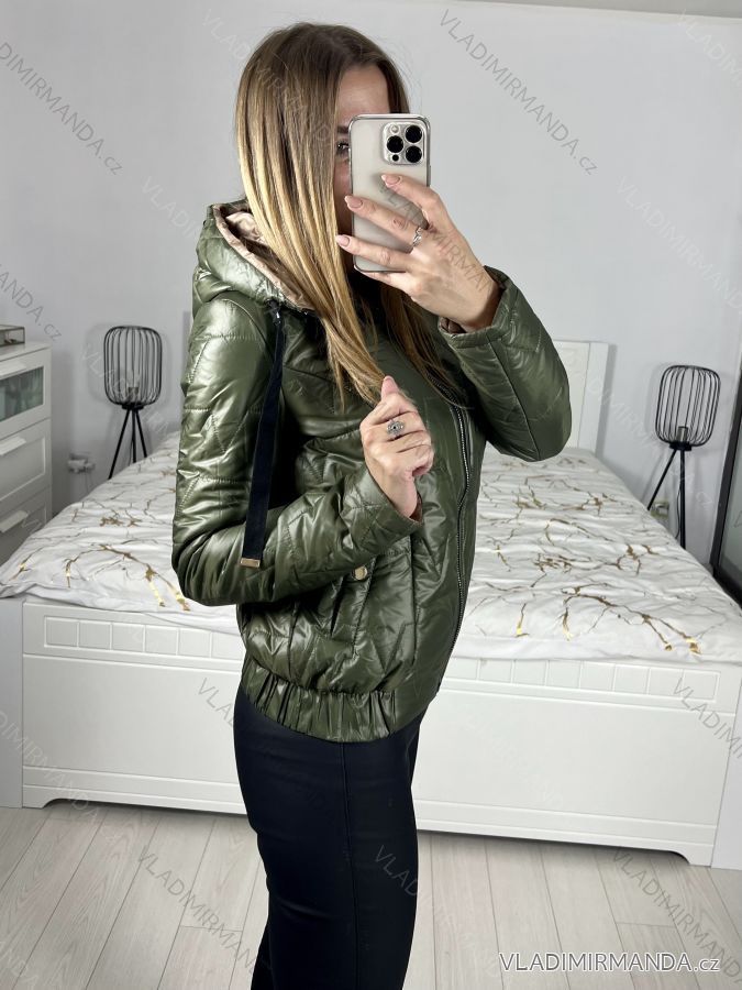 Bunda jesenná s kapucňou dámska (XS-XL) POĽSKÁ MóDA PMWC23B8219-11 Kaki XS