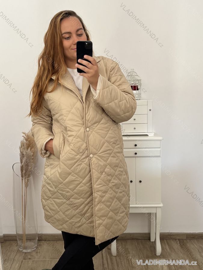 TOVAR (120816) > oblečenie dámske (81899) > Bundy, kabáty, vesty a saka (8843) > Bundy dámske (4167) > Bundy jarné-jesenná (1672) > Bunda kabát prošívaný dlhý rukáv dámska nadrozmer (2XL/3XL ONE SIZE) TALIANSKA MÓDA IMWCT233519 červená 2LX/3XL