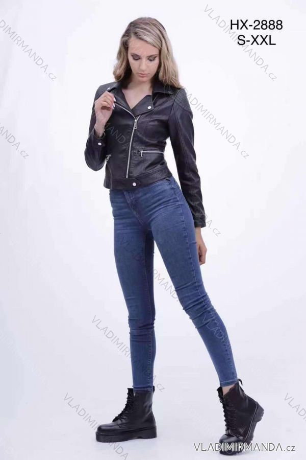 Bunda koženková dlhý rukáv dámska (S-2XL) TALIANSKÁ MÓDA IMM22HX-2888