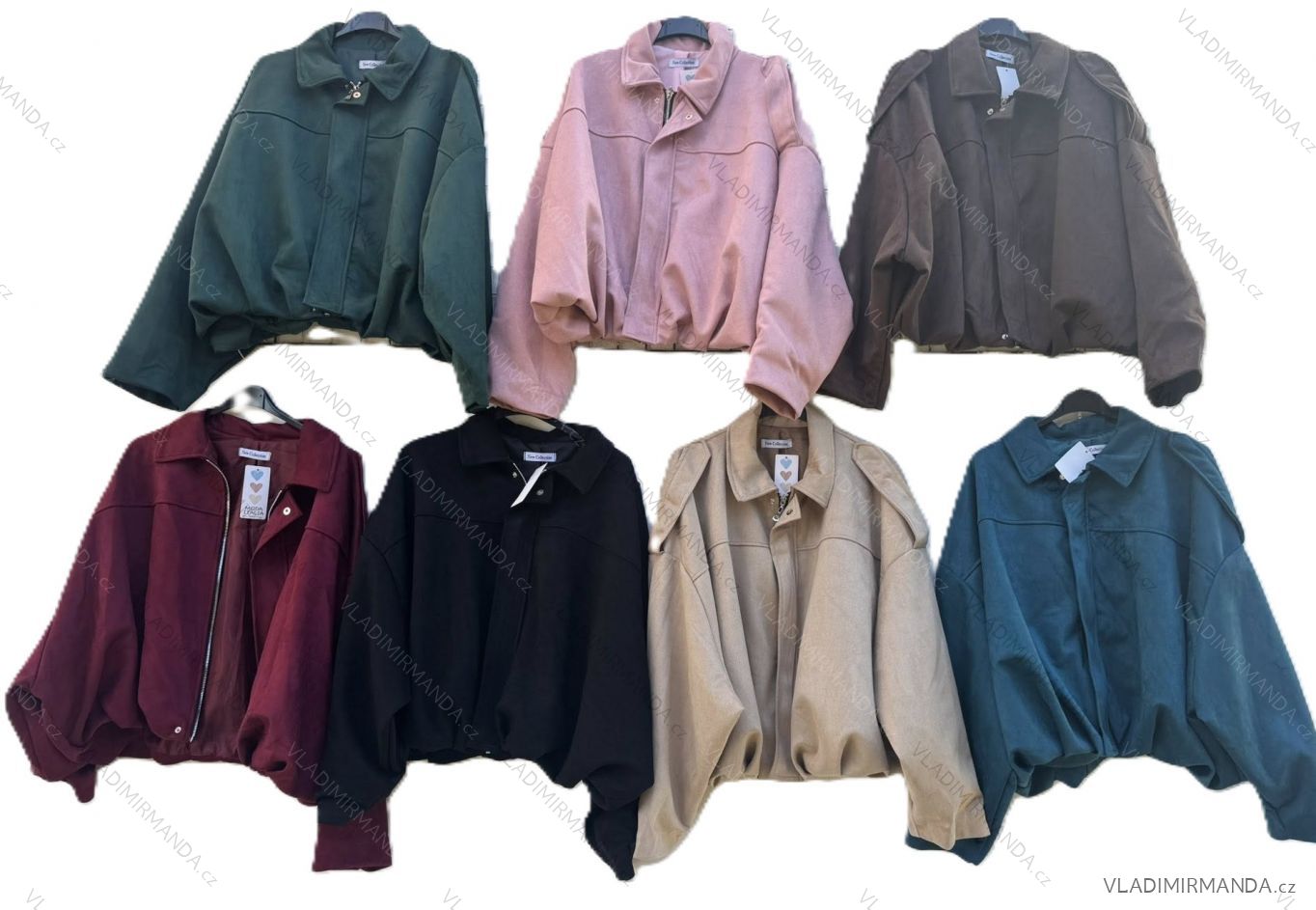 Bunda koženková dlhý rukáv dámska nadrozmer (46/48/50 ONE SIZE) TALIANSKA MÓDA IMD25232