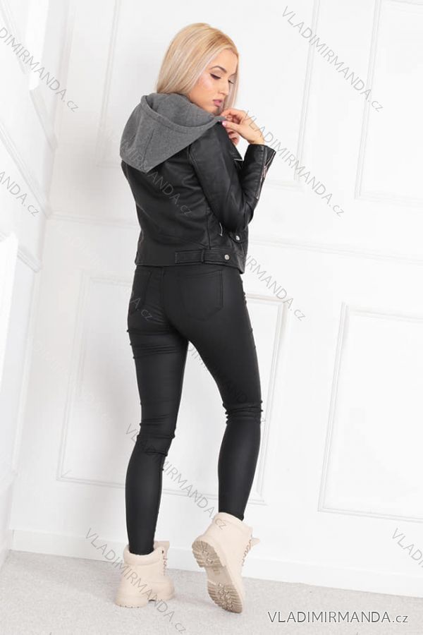 Bunda koženková s kapucňou dámska (s-xl) Poľsko MODA JMK190024