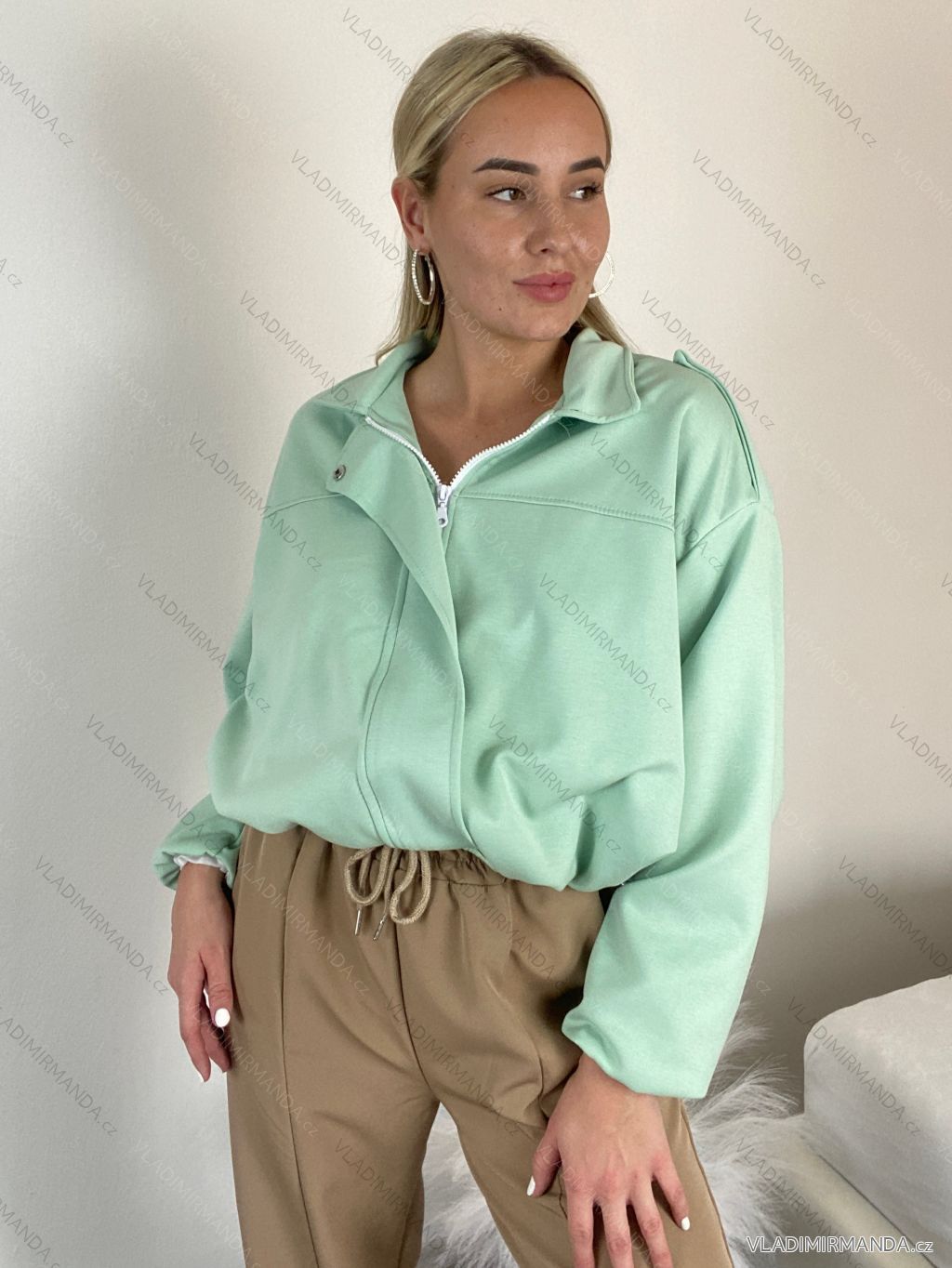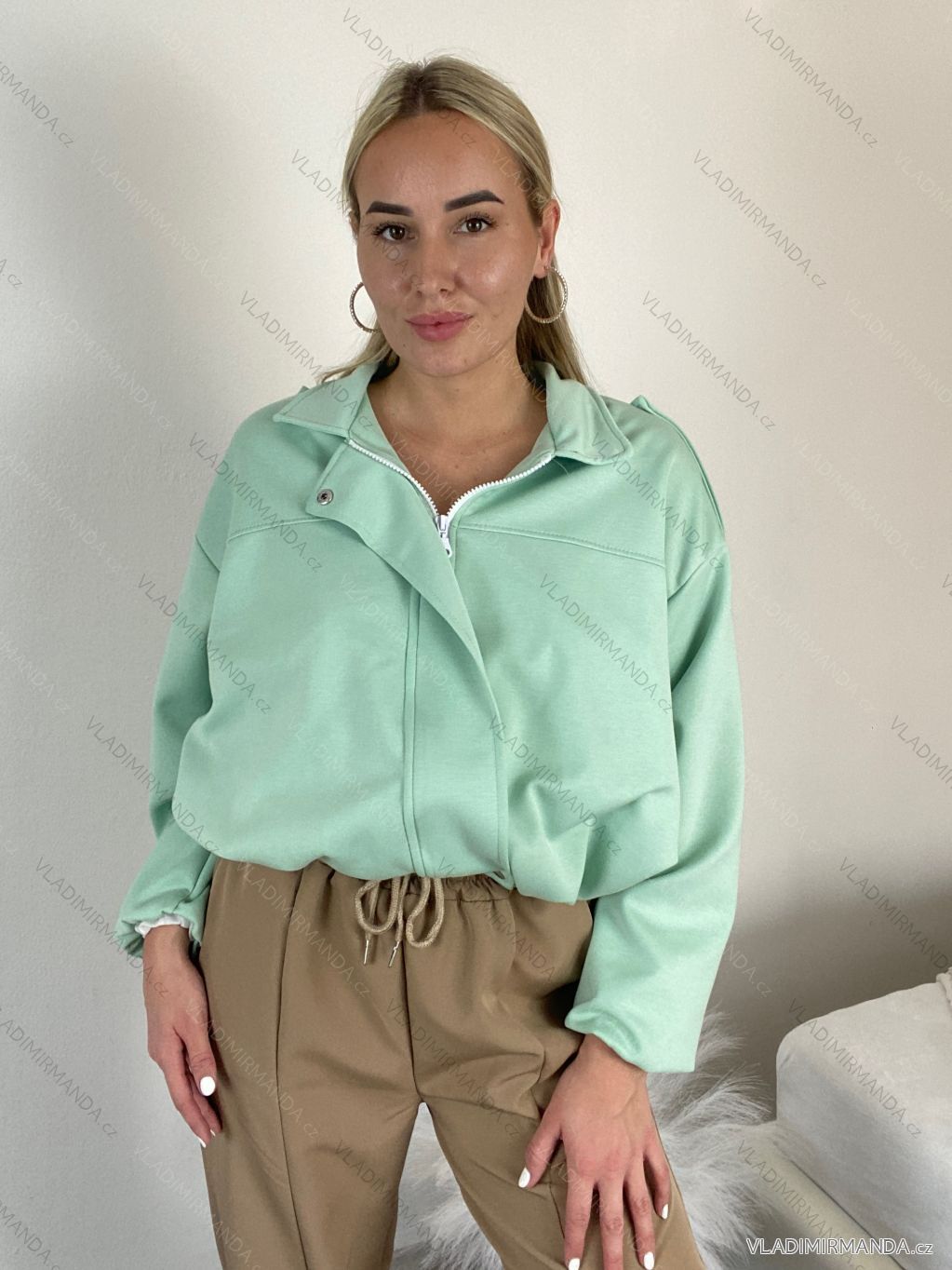 TOVAR (120494) > oblečenie dámske (81606) > Bundy, kabáty, vesty a saka (8816) > Bundy dámske (4151) > Bundy jarné-jesenná (1667) > Bunda krátka oversize dlhý rukáv dámska (S/M/L ONE SIZE) TALIANSKA MÓDA IMWGS26001/DR zelená S/M/L