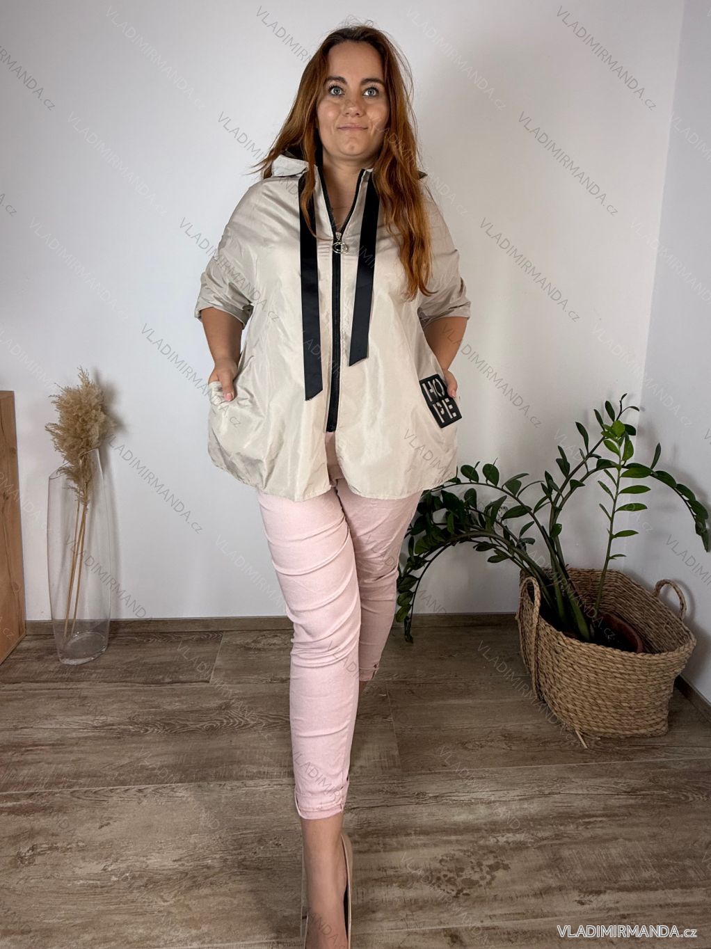 TOVAR (120678) > oblečenie dámske (82128) > Bundy, kabáty, vesty a saka (8838) > Bundy dámske (4156) > Bundy jarné-jesenná (1671) > Bunda oversize slabá na zips s kapucňou dlhý rukáv dámska nadrozmer HOPE (42/44/46 ONE SIZE) TALIANSKA MÓDA IMC250102/DR béžová
