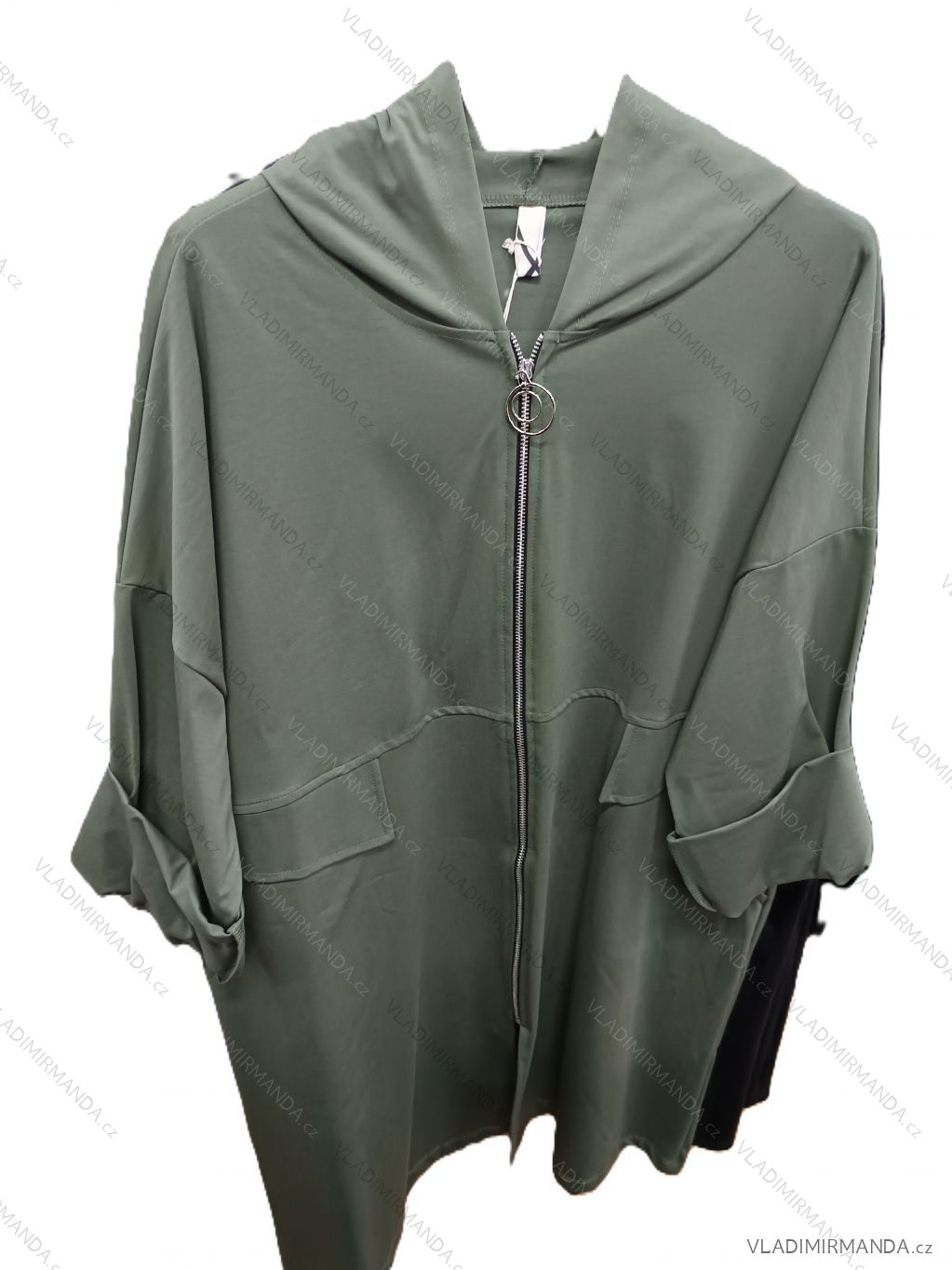 Bunda predĺžená slabá na zips s kapucňou dlhý rukáv dámska nadrozmer (40/42/44 ONE SIZE) TALIANSKA MÓDA IMSM25052