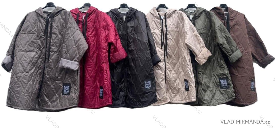 Bunda predĺžená slabá šusťáková s kapucňou dlhý rukáv dámska nadrozmer (50/52/54 ONE SIZE) TALIANSKA MÓDA IMD25212