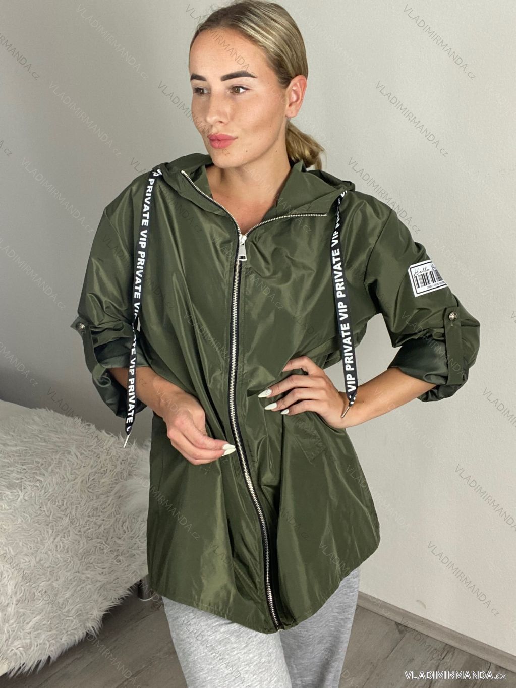 Bunda s kapucňou dámske nadrozmer (40/42/44 ONE SIZE) TALIANSKA MÓDA IM425BARI/DR 40/42 zelená khaki