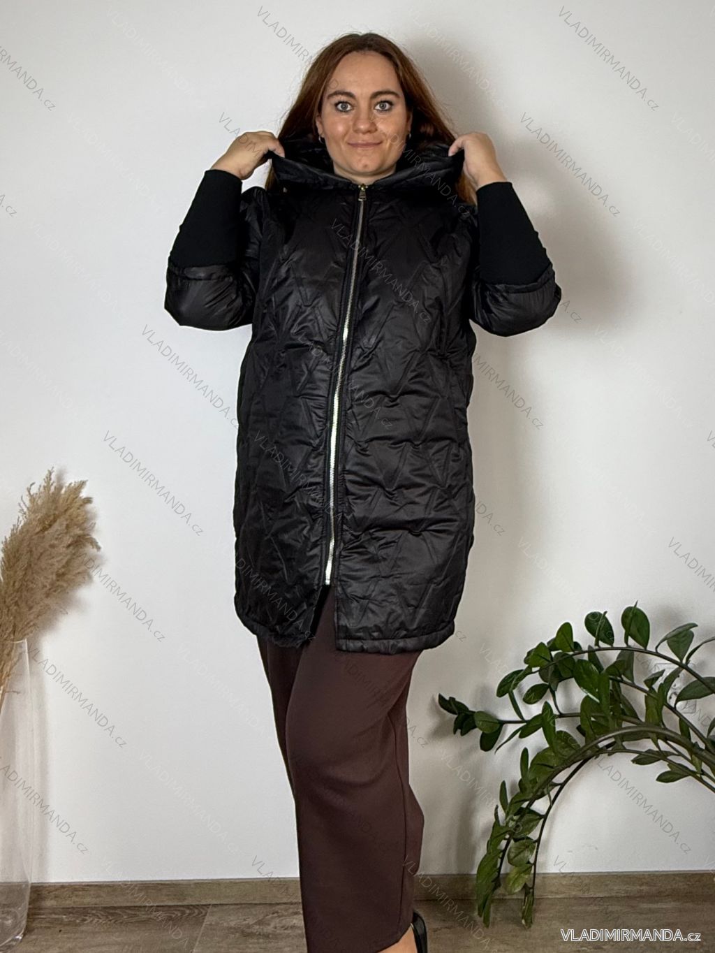 Bunda slabá prešívaná oversize dlhý rukáv dámska nadrozmer DANNA (52/54/56 ONE SIZE) TALIANSKA MÓDA IM425664/DUR tmavo smaragdová