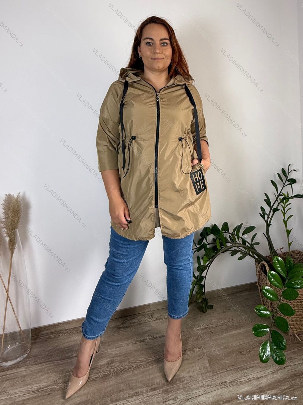 TOVAR (120816) > oblečenie dámske (81899) > Bundy, kabáty, vesty a saka (8843) > Bunda slabá s kapucňou 3/4 dlhý rukáv dámska nadrozmer HOPE (46/48/50 ONE SIZE) TALIANSKA MÓDA IMC24413/DR tm. béžová 48/50