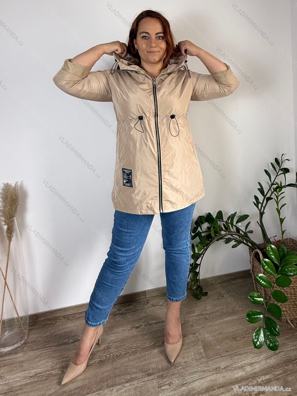 TOVAR (120816) > oblečenie dámske (81899) > Bundy, kabáty, vesty a saka (8843) > Bunda slabá s kapucňou 3/4 dlhý rukáv dámska nadrozmer HOPE (46/48/50 ONE SIZE) TALIANSKA MÓDA IMC24413/DR béžová 48/50