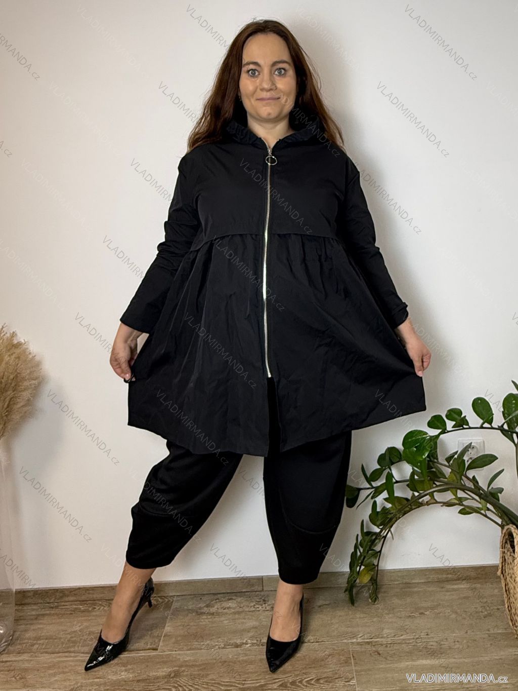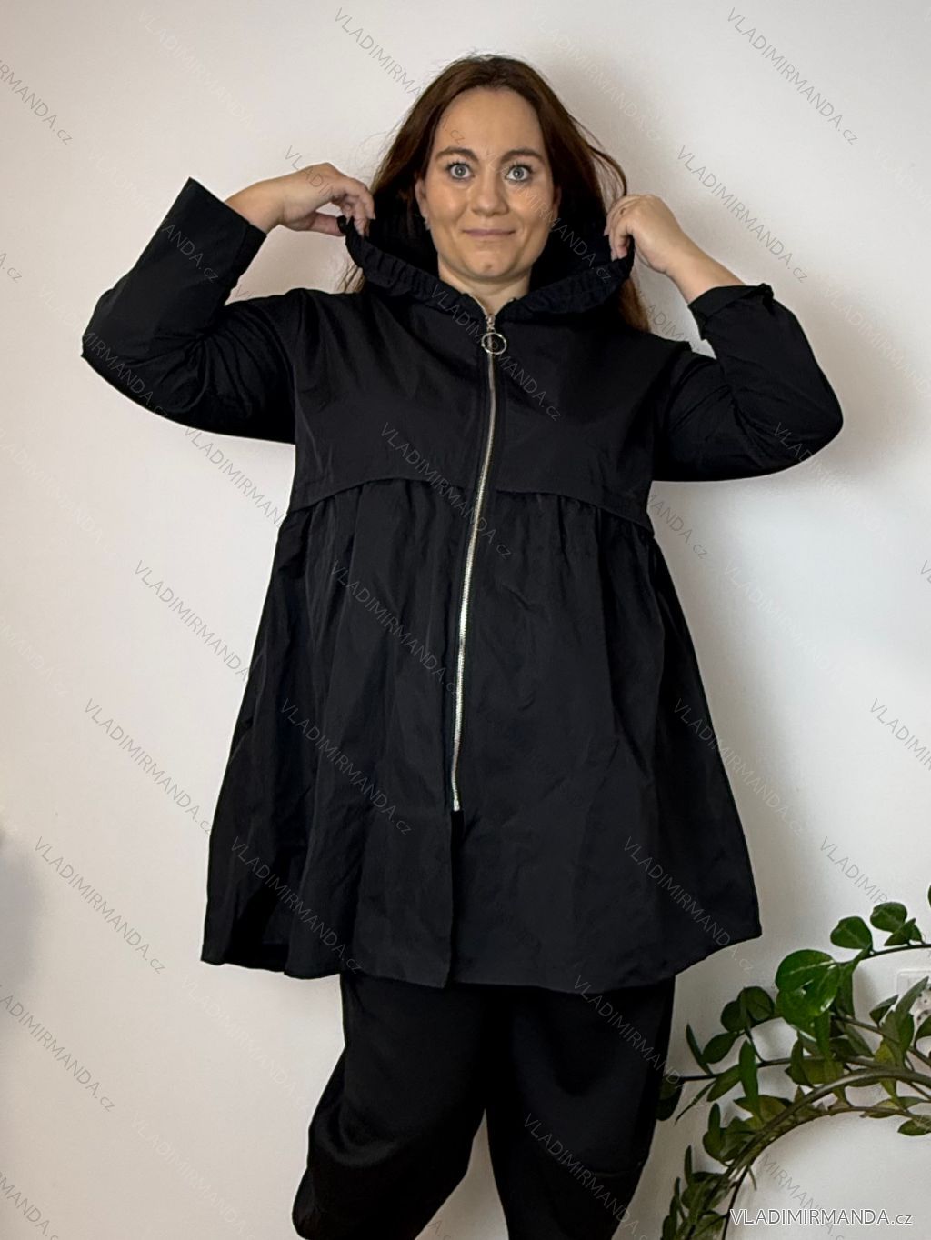 Bunda slabá šusťáková s kapucňou dlhý rukáv dámska nadrozměr (48/50/52 ONE SIZE) TALIANSKA MÓDA IMSM26038/DU čierna
