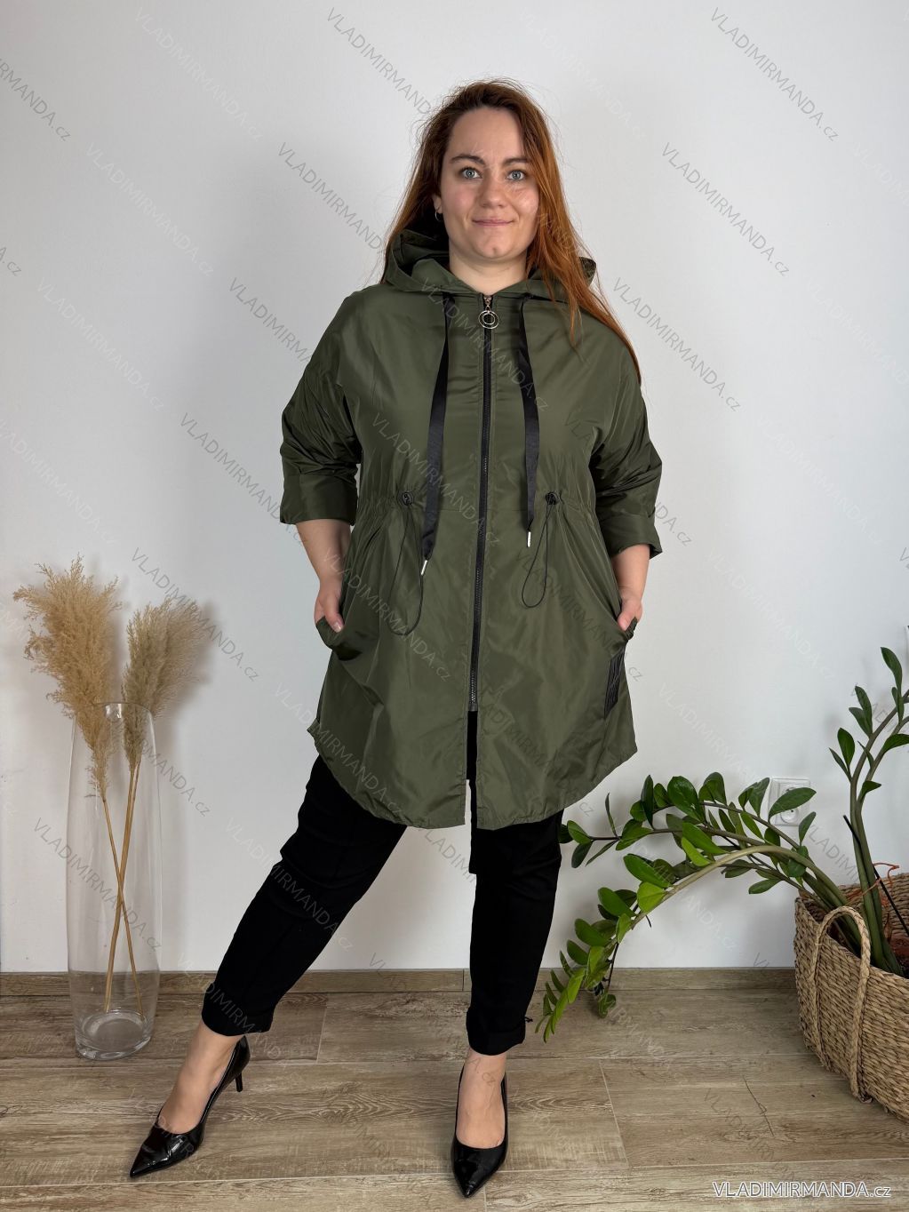 TOVAR (120551) > oblečenie dámske (81918) > Bundy, kabáty, vesty a saka (8821) > Bundy dámske (4156) > Bundy jarné-jesenná (1671) > Bunda sťahovacia slabá na zips s kapucňou dlhý rukáv dámska nadrozmer (50/52/54 ONE SIZE) TALIANSKA MÓDA IMC25097