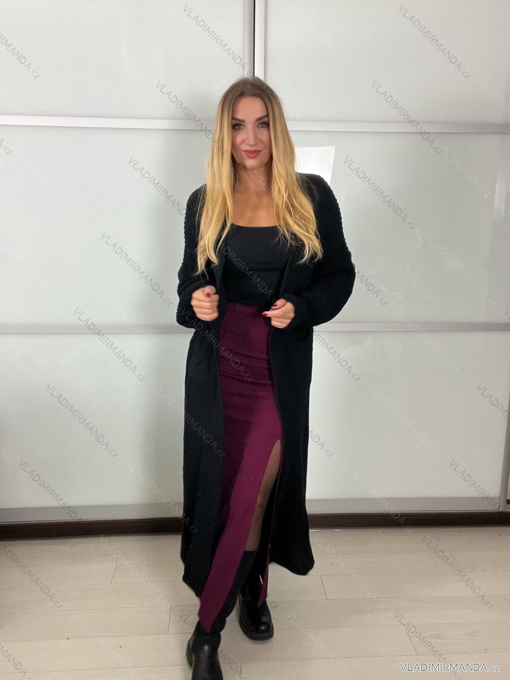 Cardigan dlhý pletený dlhý rukáv dámsky (S/M/L ONE SIZE) TALIANSKA MÓDA IMPLI258091/DU - čierna - S/M/L