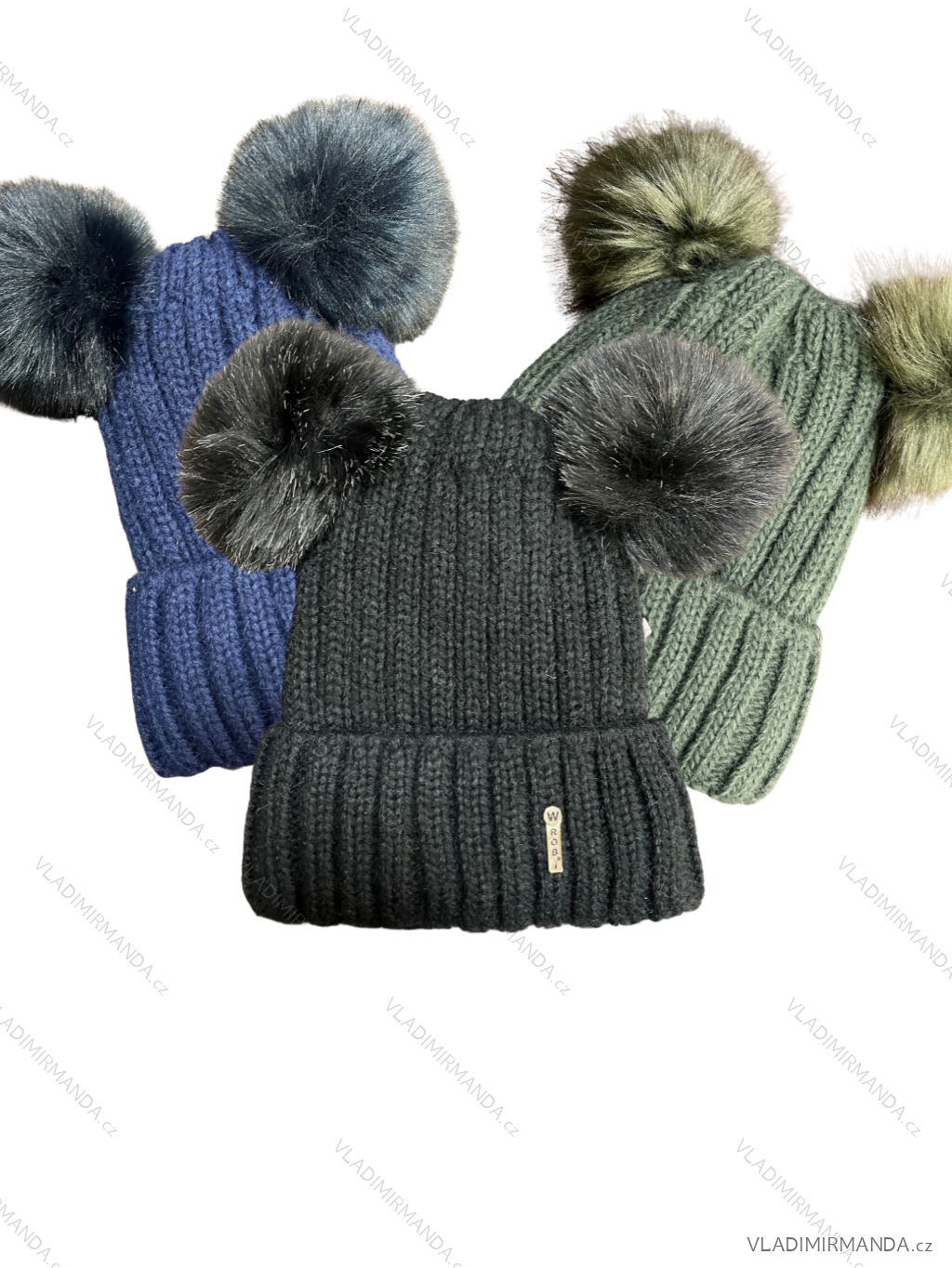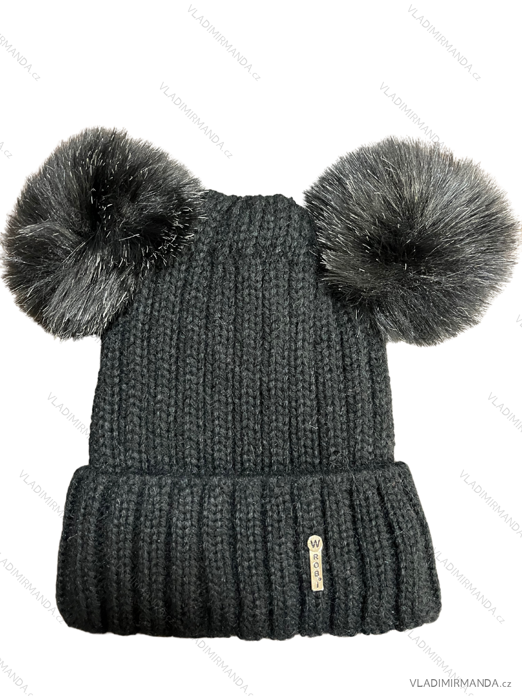 Čiapka zimná dvě bambule dámska (ONE SIZE) WROBI POLSKÁ VÝROBA PV922031/DR ONE SIZE čierna