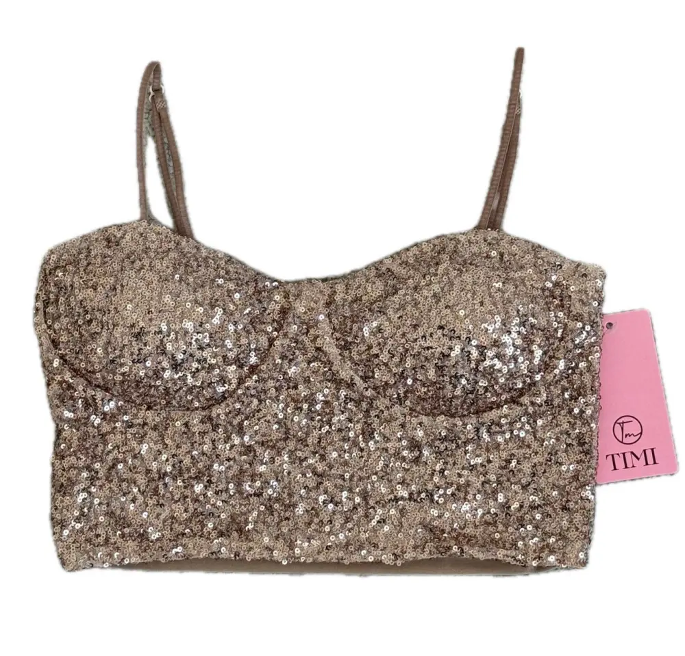 TOVAR (120715) > oblečenie dámske (82155) > Topy, tričká, tuniky a tielka (13146) > Tielka a topy (2102) > Croptopy (561) > Croptop elegantný flitrový na ramienka dámsky (S/M/L ONE SIZE) TALIANSKA MÓDA IMPBB24A13171