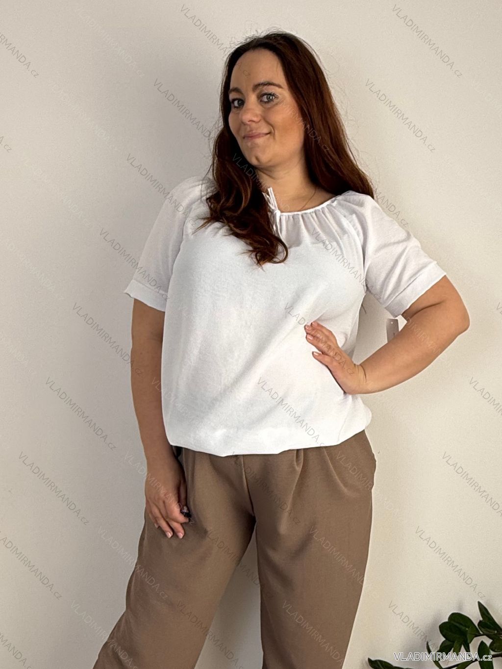 Halenka krátky rukáv dámske nadrozmer MINA (50/52/54 ONE SIZE) TALIANSKA MÓDA IMC261113/DU 50/52/54 biela