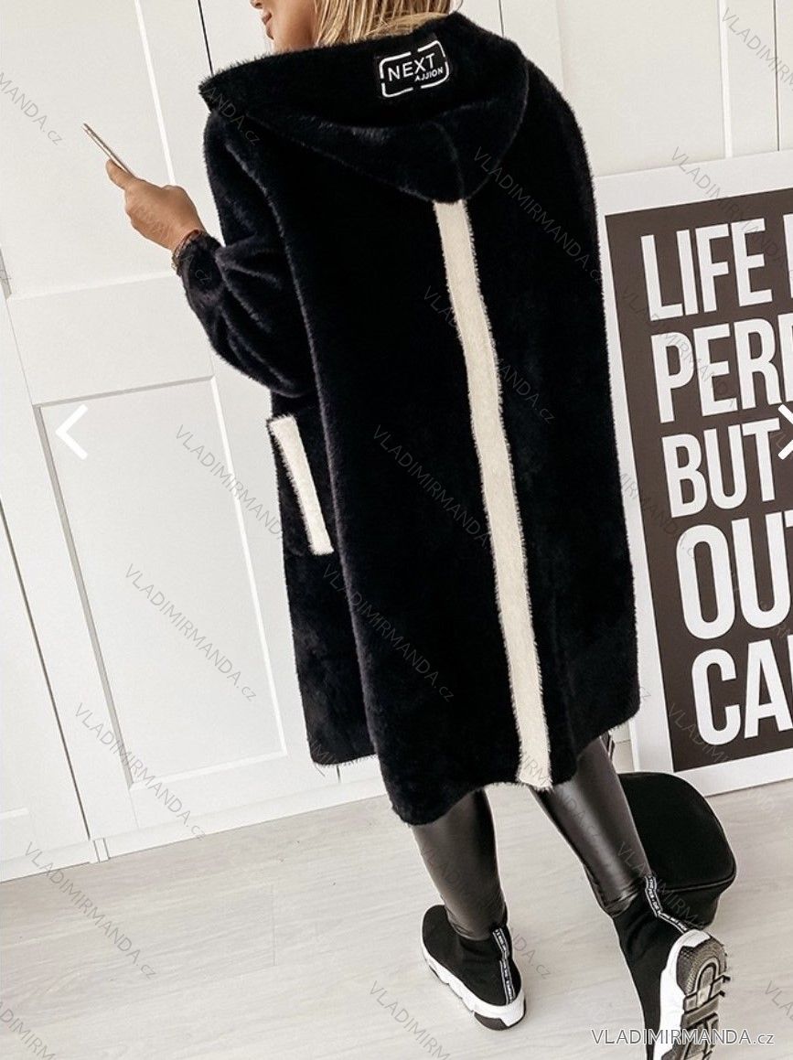 Kabát alpaka s kapucňou dlhý rukáv dámsky (S/M ONE SIZE) TALIANSKA MÓDA IMWAK24024