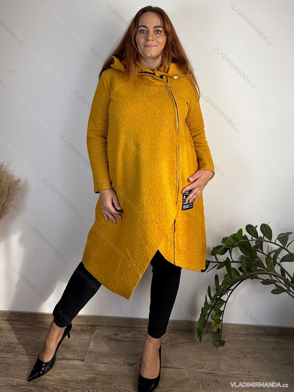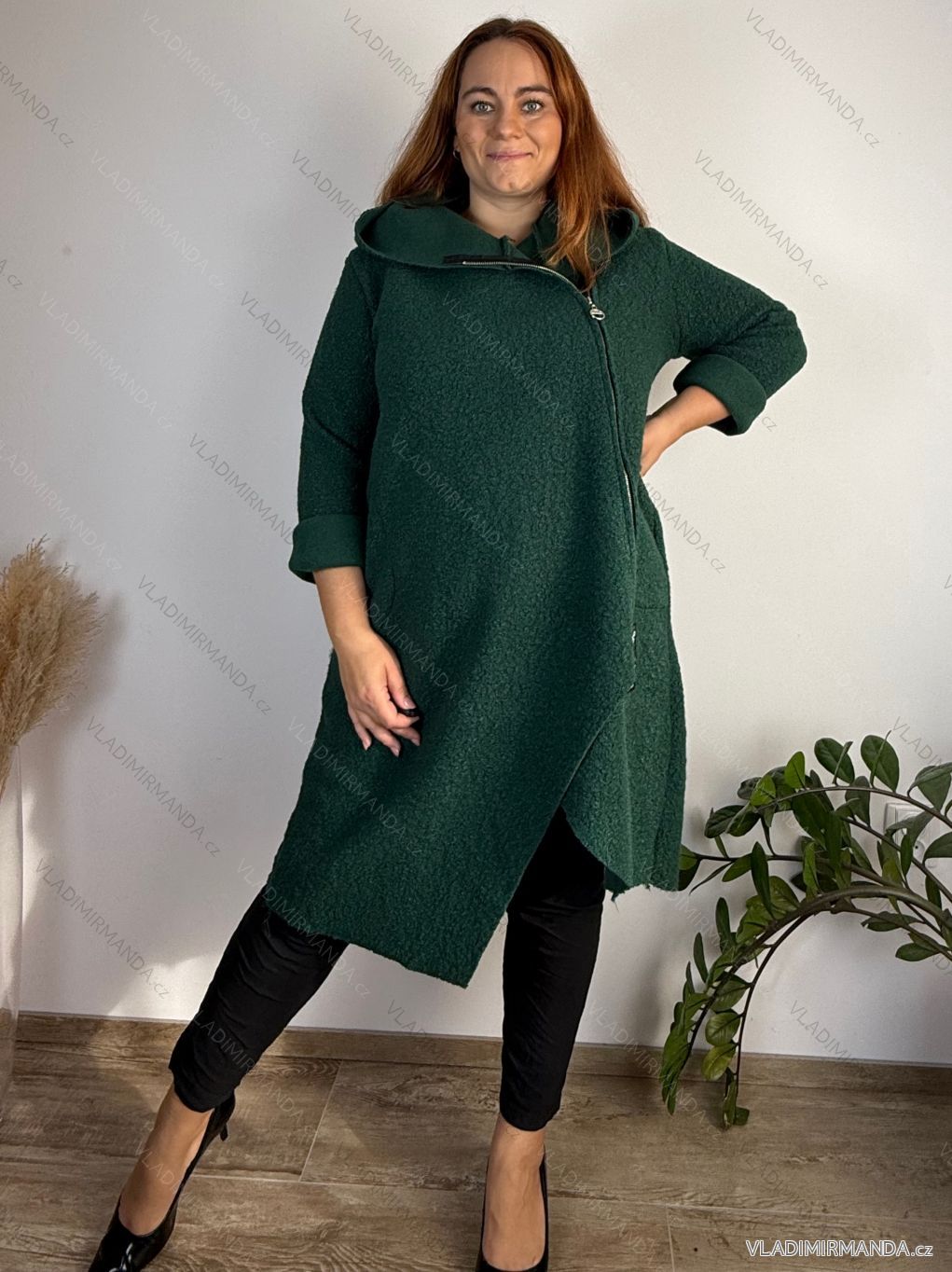 Kabát flaušový baránkový s kapucňou na zips dlhý rukáv dámsky nadrozmer (50/52/54 ONE SIZE) TALIANSKA MÓDA IM425500/DU smaragdová 50/52/54