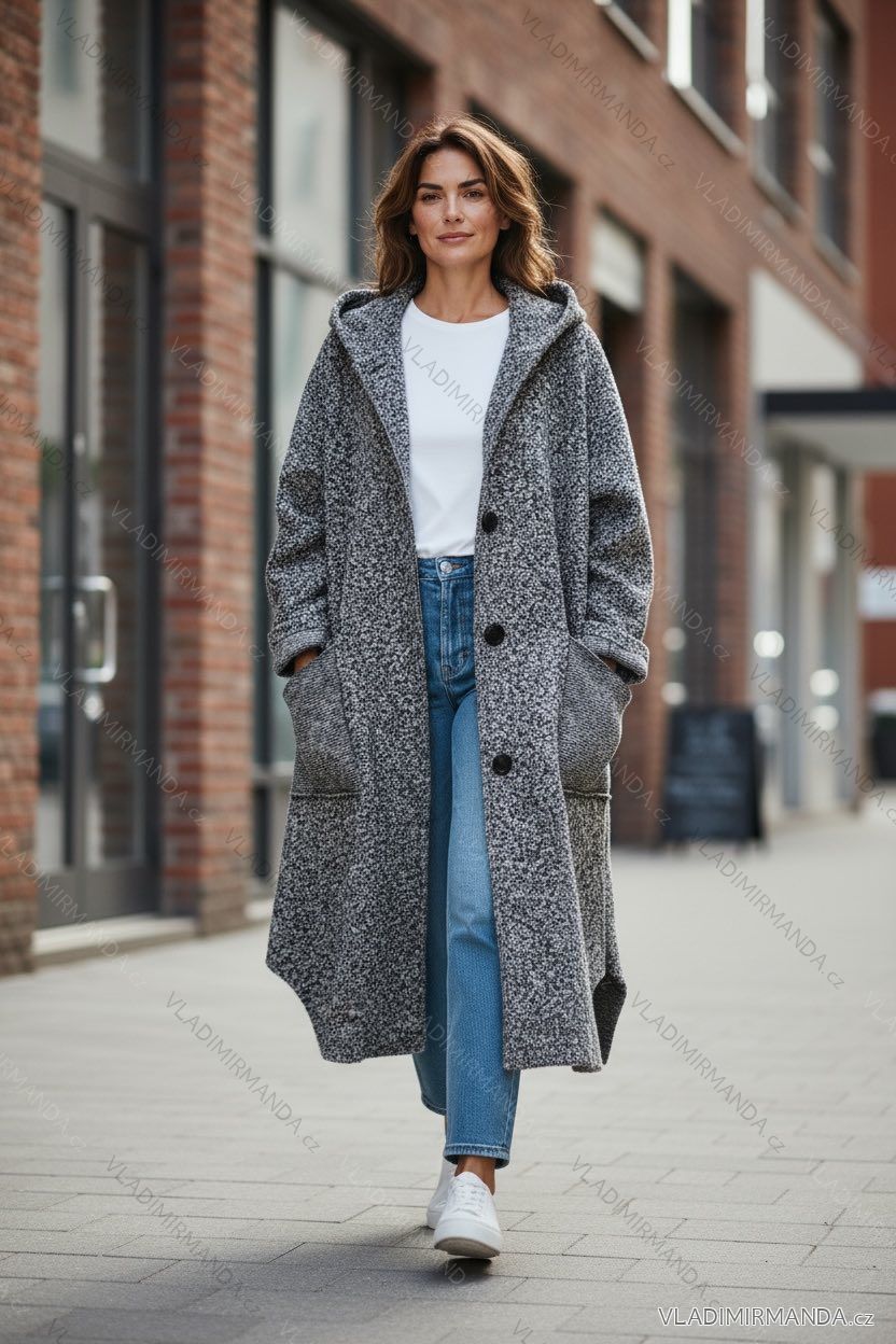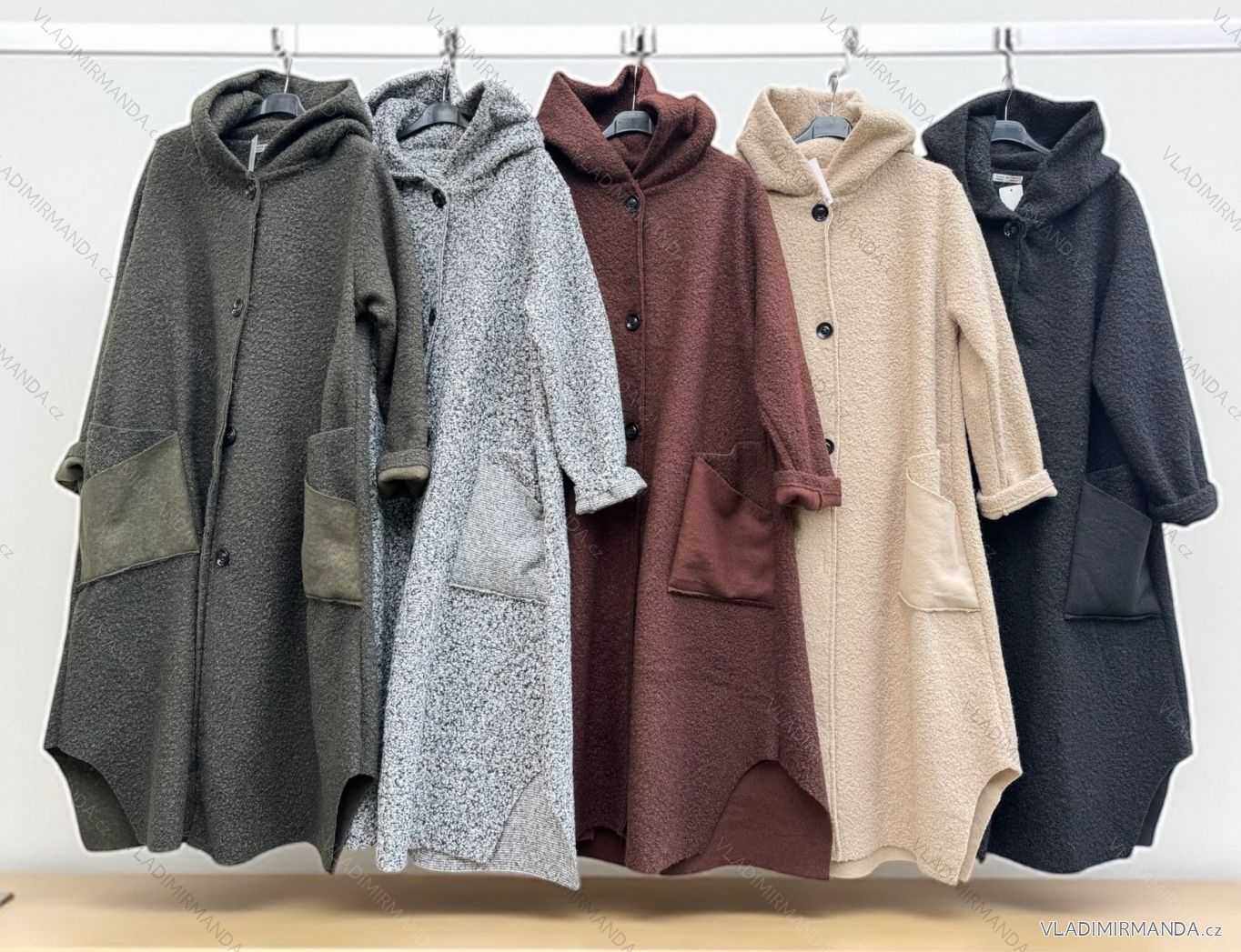 Kabát flaušový dlhý rukáv dámsky nadrozmer (46/48/50 ONE SIZE) TALIANSKA MÓDA IMD25249