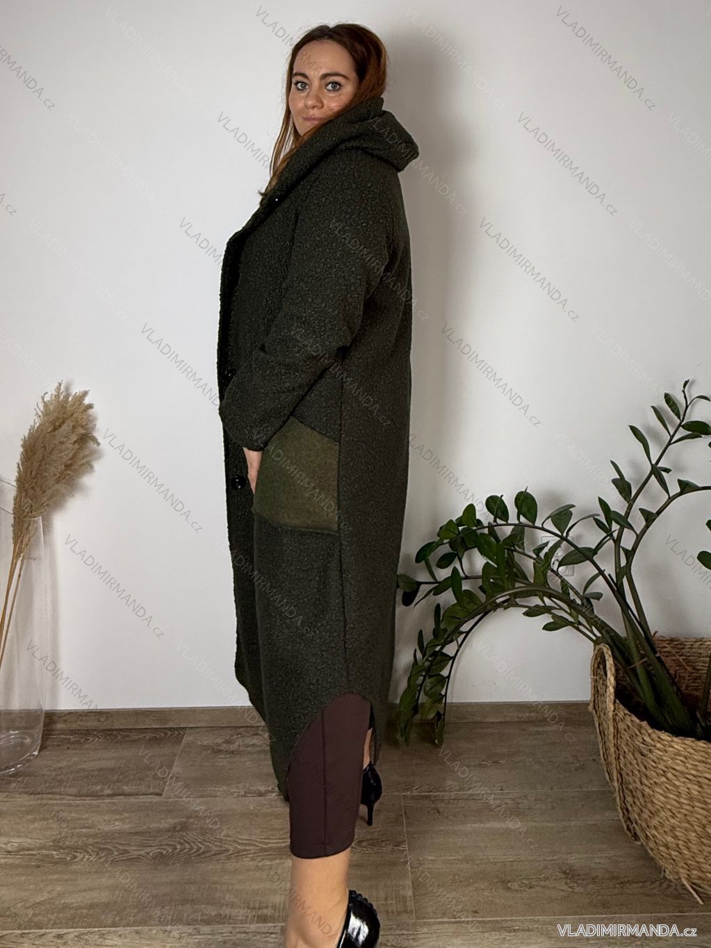 TOVAR (120029) > oblečenie dámske (81295) > Bundy, kabáty, vesty a saka (8719) > kabáty dámske (3582) > kabáty flaušový (823) > Kabát flaušový dlhý rukáv dámsky nadrozmer LADY (52/54/56 ONE SIZE) TALIANSKA MÓDA IMD25249/DUR tmavo hnedá